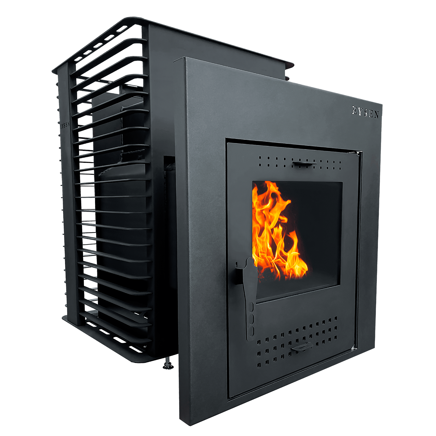В дверь вмонтировано панорамное жаропрочное стекло ROBAX производства Германия. Система чистое стекло позволяет Вам наслаждаться красотой огня.