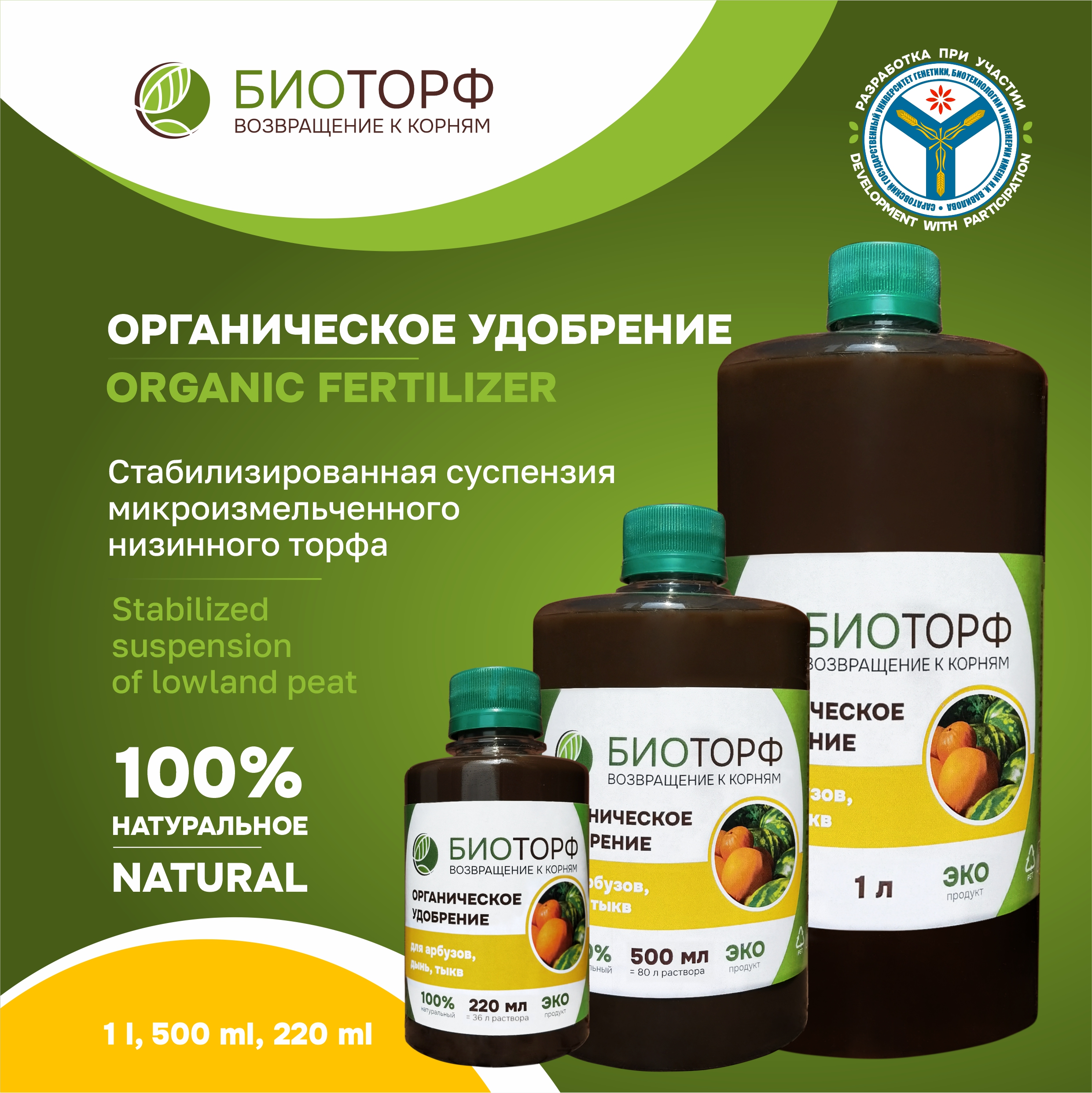 Органическое удобрение Биоторф – это мультимолекулярный комплекс макро-, мезо- и микроэлементов в гуминовом препарате, полученном по технологии проточной ультразвуковой экстракции низинного торфа и торфосодержащих компонентов.
