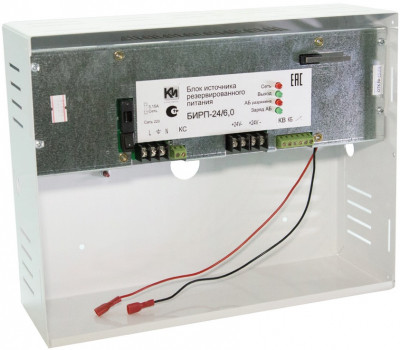 Блок источника резервированного питания БИРП24/6,0 обеспечивает выходную мощность до 144 Вт в сетевом диапазоне от 150 до 265В благодаря применению импульсного ШИМ преобразователя. Электронная схема прибора обеспечивает стабилизированное выходное напряжение и защищает нагрузку от импульсов и всплесков сетевого напряжения и иных отклонений от нормальных параметров работы электросети.