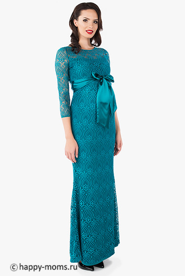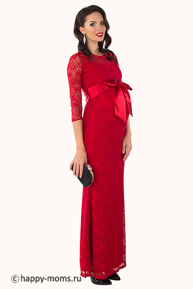 Платье для беременных в пол из кружева. Верх с округлый горловиной, рукава 3/4, объём на животик создаётся за счёт сборки и эластичности ткани, дополнено поясом-бантом из атласа. Яркое платье для эффектного выхода в свет прекрасно подходит как блондинкам, так и брюнеткам. В таком платье вас невозможно не заметить. На фото: модель, рост 171 см., обхват груди - 83 см, обхват бедер 94 см, имитация 5-го месяца беременности.
