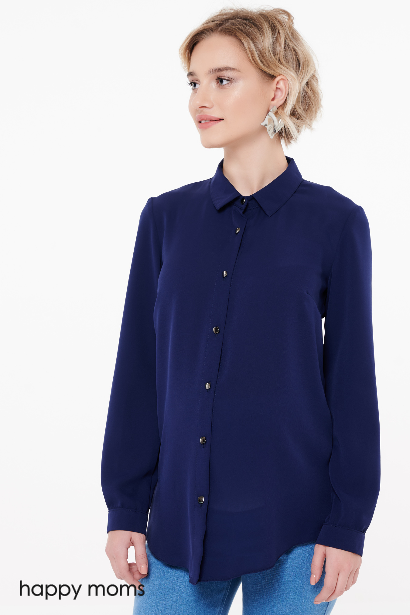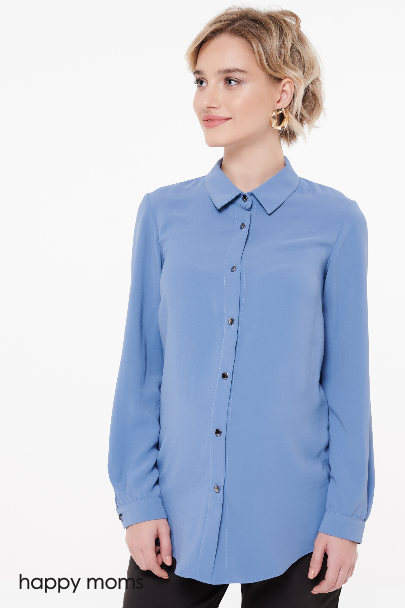Блузка с фигурным низом, передняя часть чуть длиннее спинки, крой предусматривает дополнительный объем для растущего животика. Модель выполнена в классическом стиле: планка на лаконичных пуговицах, рубашечный воротник и рукава на манжетах. Гармонирует с таким же элегантным низом, отлично смотрится и с более демократичными джинсами. Идеально подходит для повседневной носки, для офисного лука, если мама продолжает работать. Ткань приятная телу, легкая, простая в уходе. Блузка легко может стать базовой моделью вашего гардероба, благодаря своему универсальному цвету и фасону.