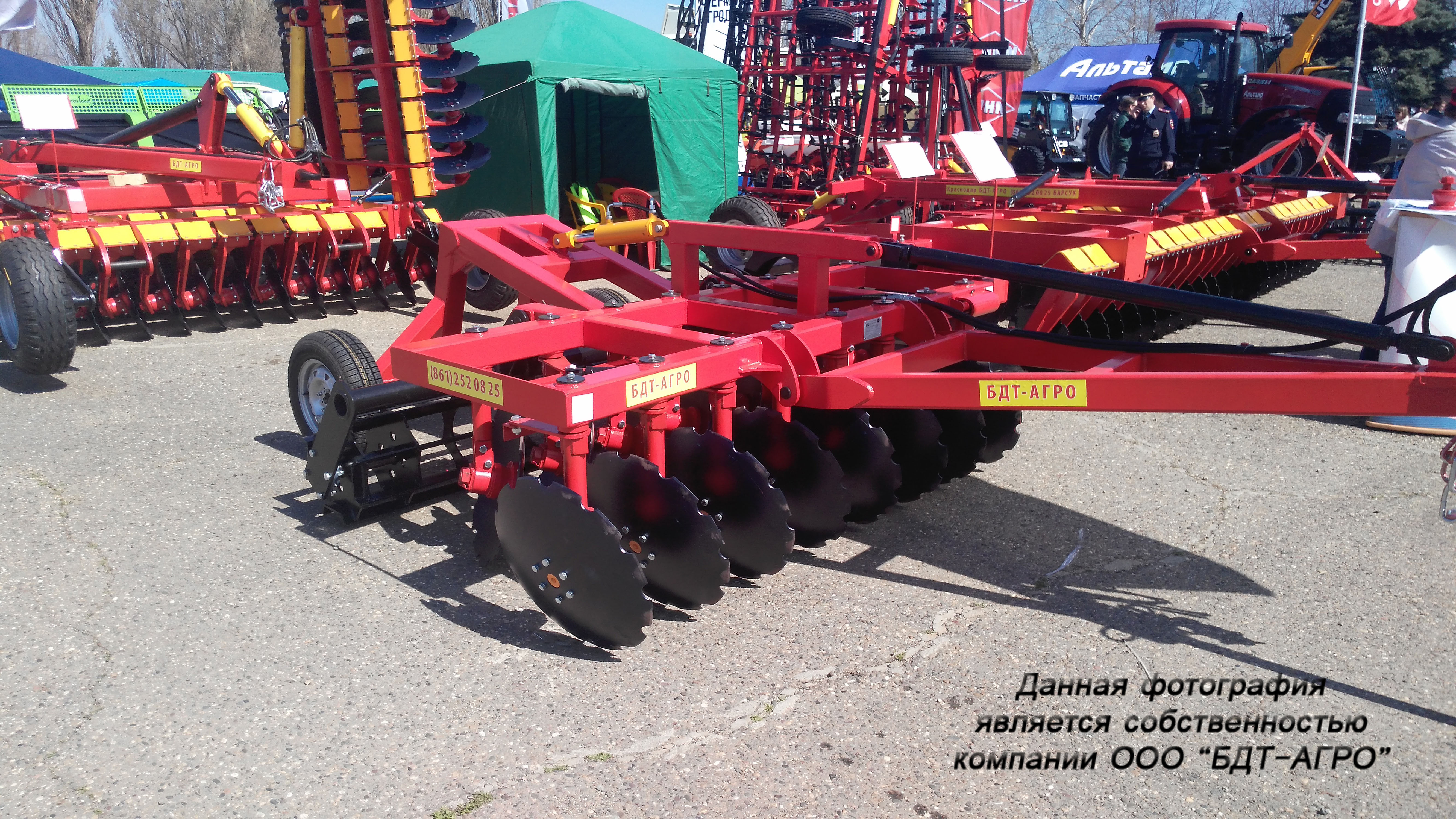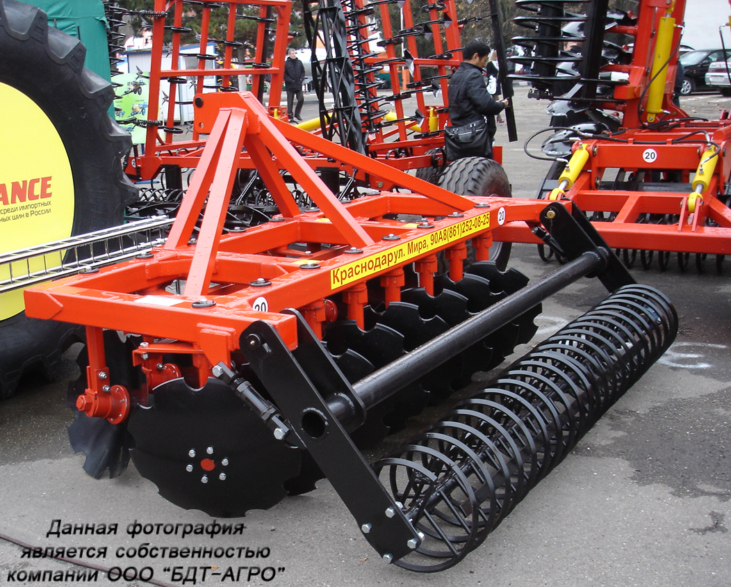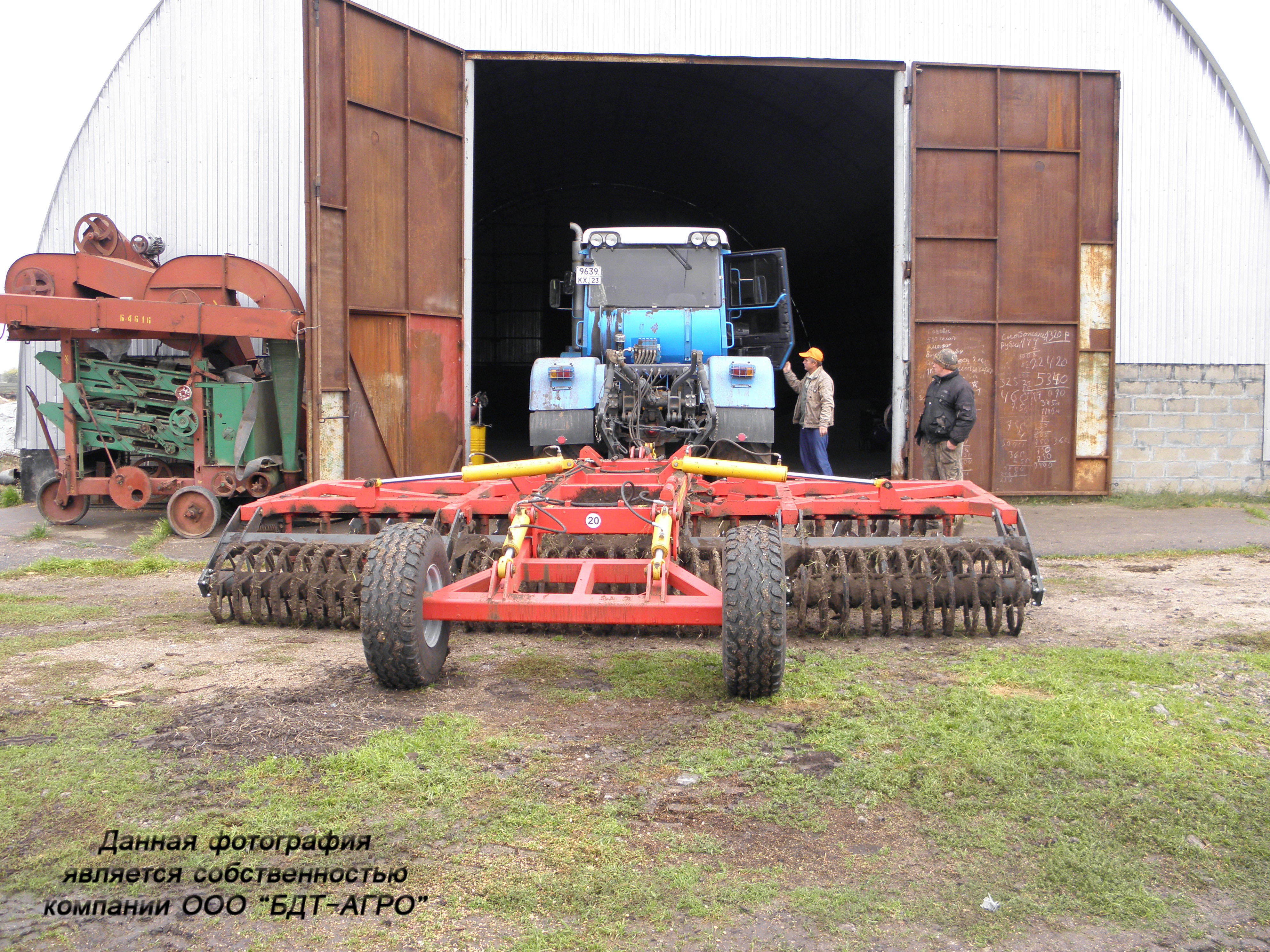 Двухрядная борона дисковая модернизированная БДМ с подшипниковым узлом внутри сферы диска, с дисками на индивидуальной стойке, с изменением угла атаки дисков синхронно в каждом ряду, предназначена для поверхностной обработки почвы на глубину до 15см, уничтожения сорняков и измельчения пожнивных остатков. За счет равномерного перемешивания земли с растительными остатками эффективно применение бороны дисковой на почвах подверженных ветровой и водной эрозии. Растительные остатки, равномерно перемешанные с верхним слоем почвы, защищают почву от выдувания и вымывания, улучшают воздушный обмен. При этом растительные остатки, находясь в земле, активно превращаются в перегной, повышая плодородие почвы.