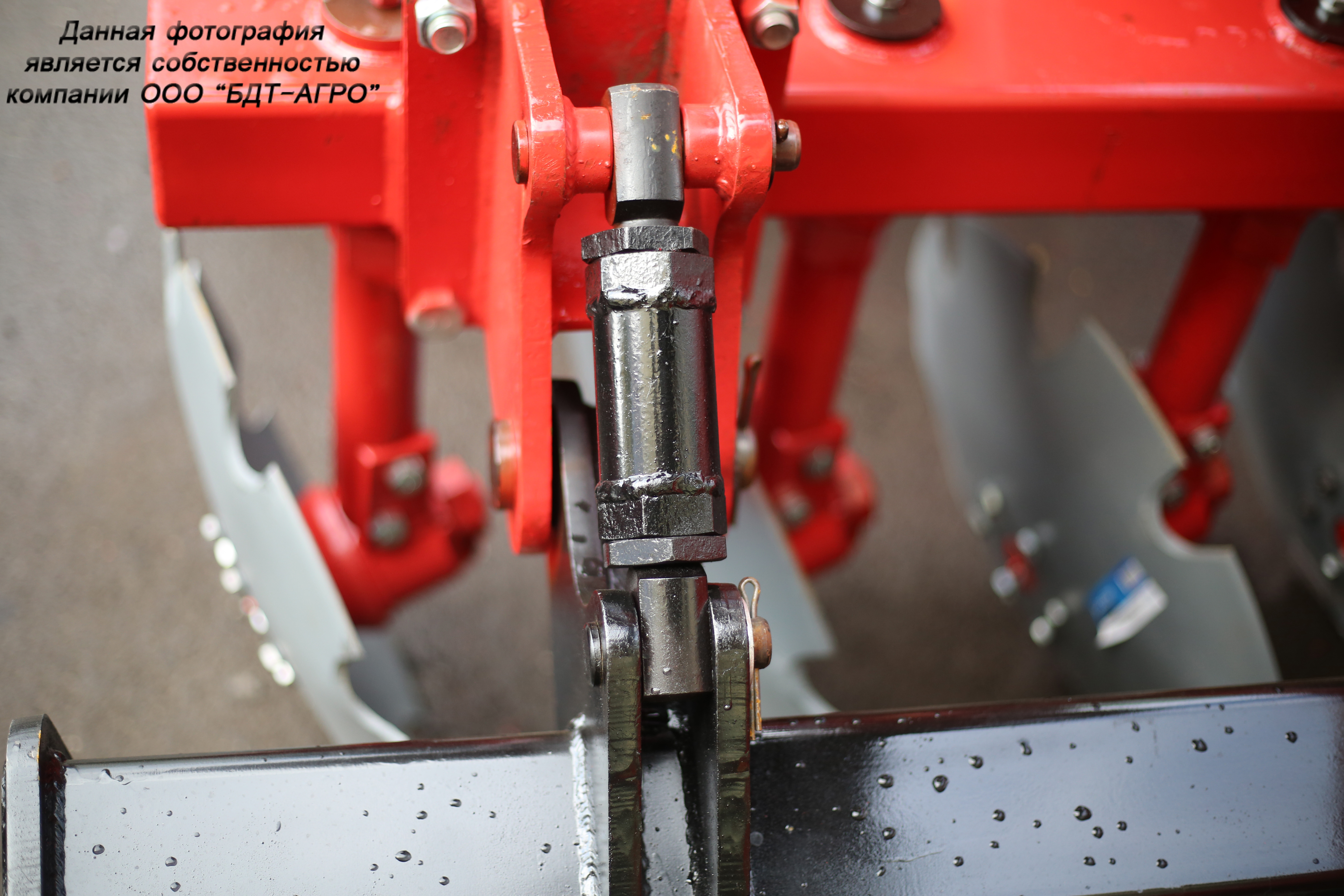 2. У орудий БДТ-АГРО стойка диска имеет канал и проточку для смазки. Смазку достаточно производить один раз в сезон, поэтому каждое орудие комплектуется всего одним спецболтом с масленкой. В экстренных случаях можно выкрутить болт крепления стойки, заложить смазку и продавить ее в соединение при закручивании этого же болта. Это значительно улучшило работоспособность соединения и демонтаж стойки.