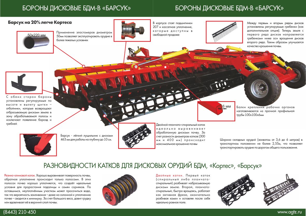 Отличия борон дисковых БДМ-В БАРСУК от БДМ-В КОРТЕС®: