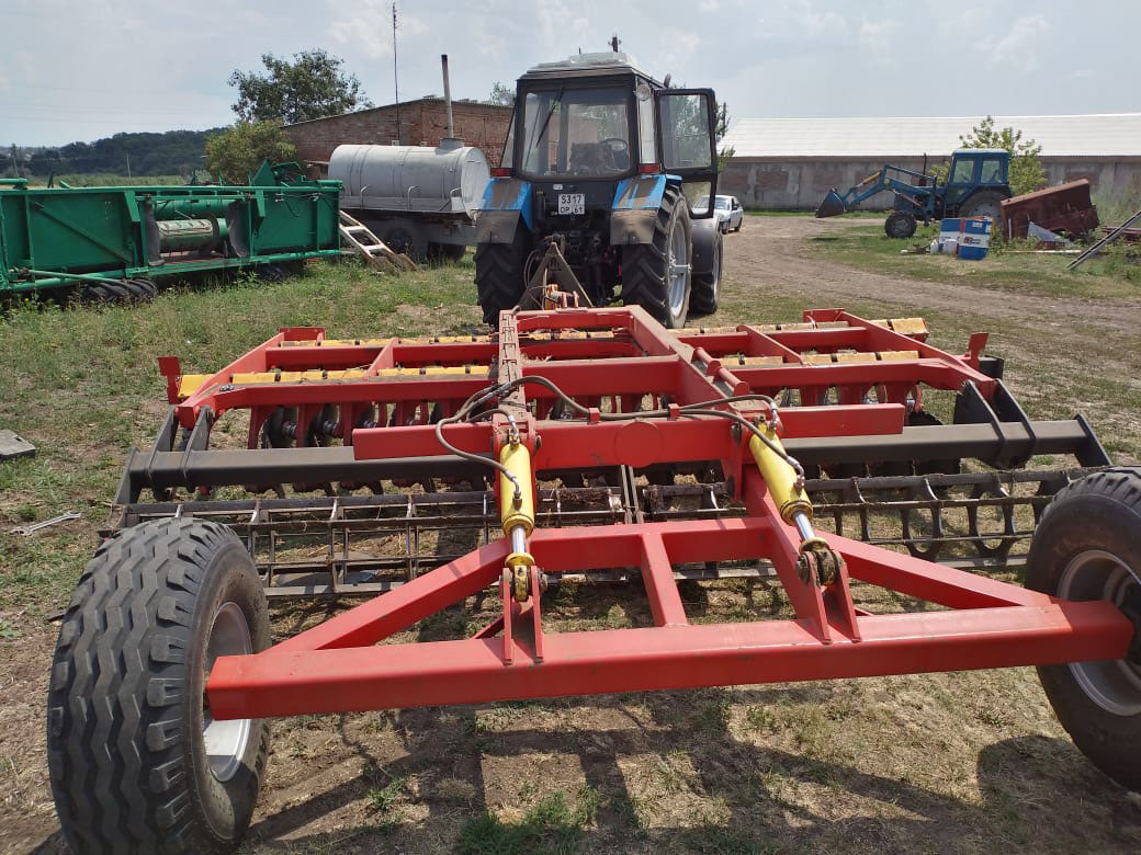 Двухрядная борона дисковая модернизированная БДМ-В БАРСУК с подшипниковым узлом снаружи сферы диска, на стойках с эластомерами, предназначена для поверхностной обработки почвы на глубину до 10см, уничтожения сорняков и измельчения пожнивных остатков. За счет равномерного перемешивания земли с растительными остатками эффективно применение бороны дисковой на почвах подверженных ветровой и водной эрозии. Растительные остатки, равномерно перемешанные с верхним слоем почвы, защищают почву от выдувания и вымывания, улучшают воздушный обмен. При этом растительные остатки, находясь в земле, активно превращаются в перегной, повышая плодородие почвы.