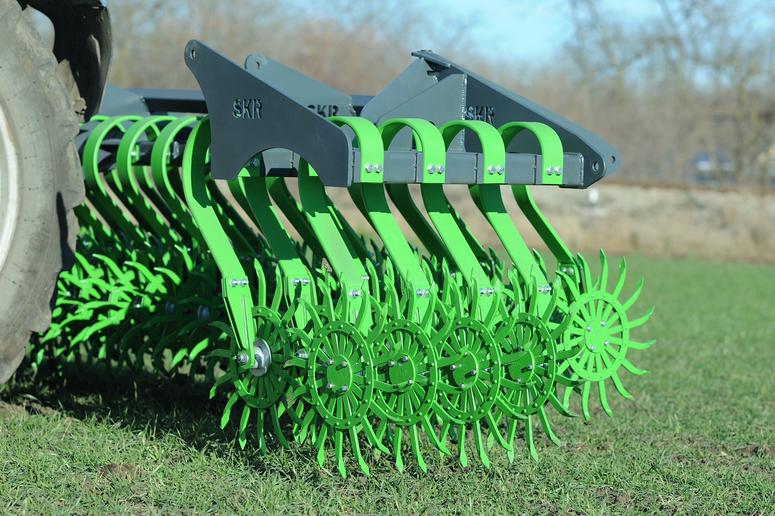 Данная ротационная борона мотыга имеет две точки смазки, является не обслуживаемой, а также её можно задавливать гидравликой. Каждое колесо установлено на индивидуальную подпружиненную стойку размером 70х12.