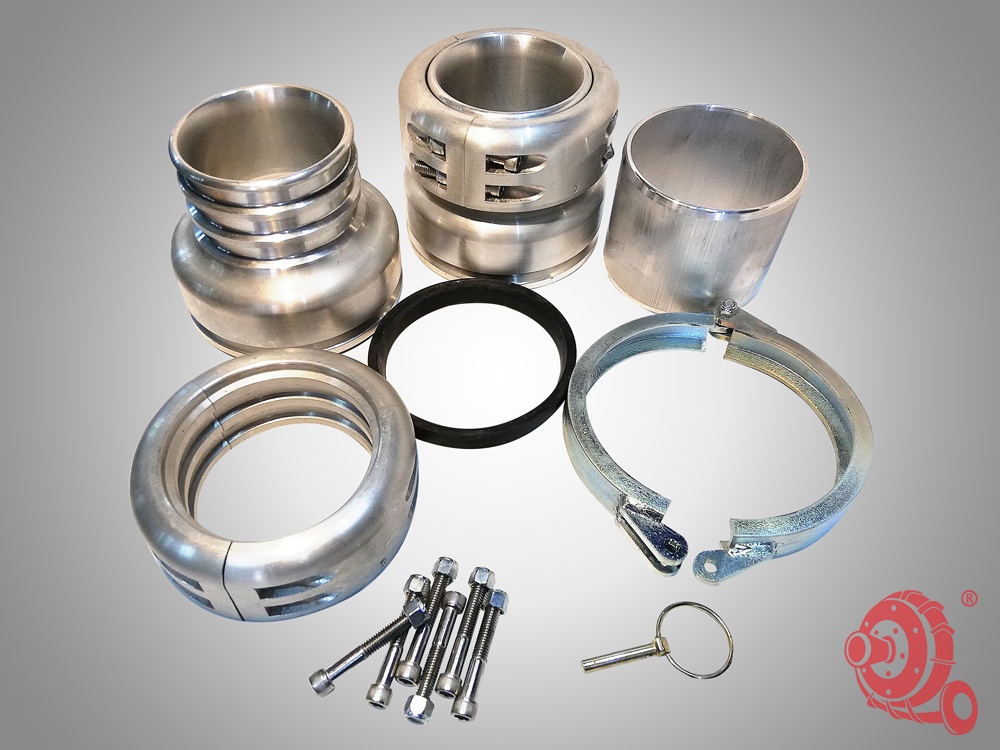 - Состоят из двух идентичных половин с уплотнительными манжетами, вставленных в трубопровод, закрепленных трехсекционными, двухболтовыми хомутами и соединенных между собой с помощью втулки и стального хомута