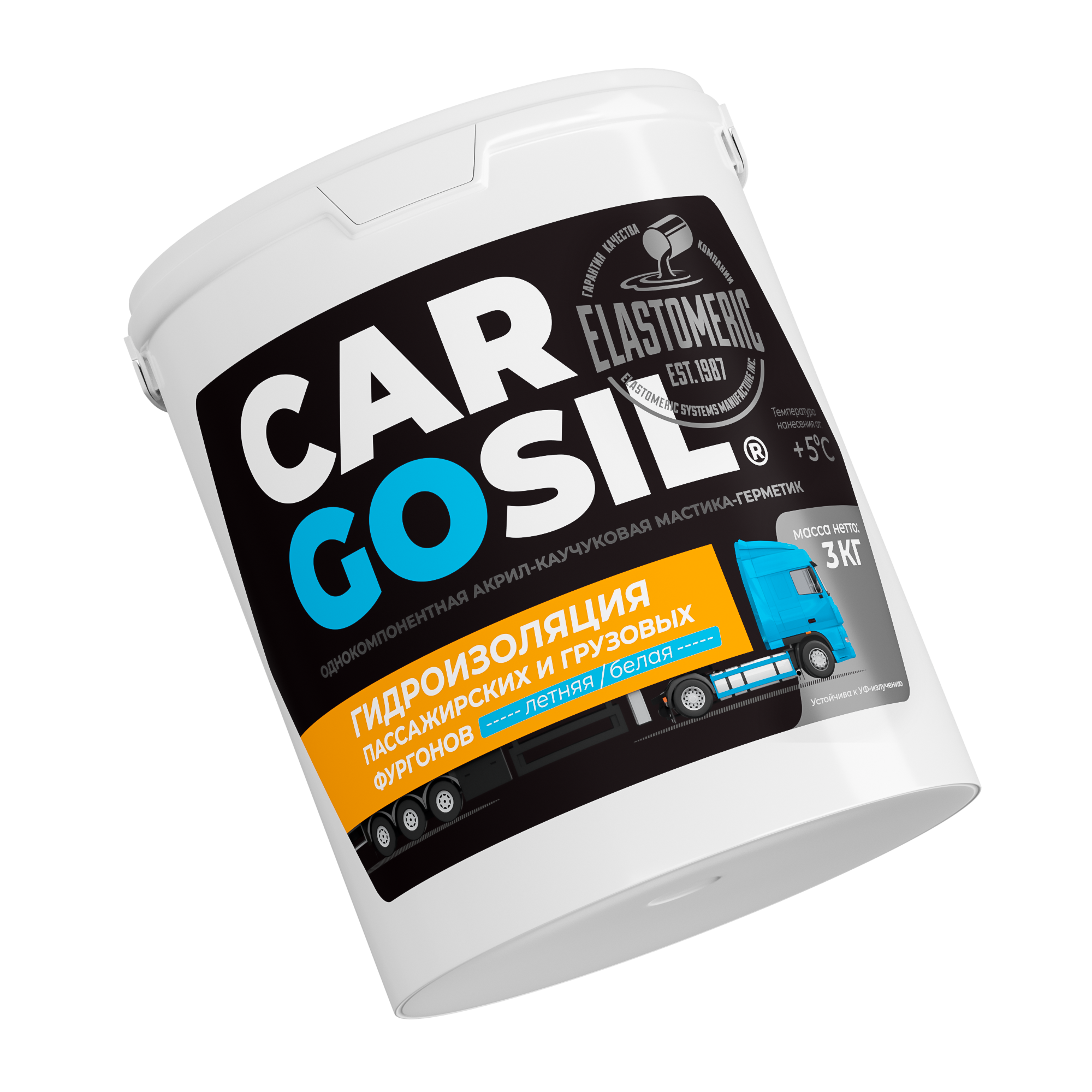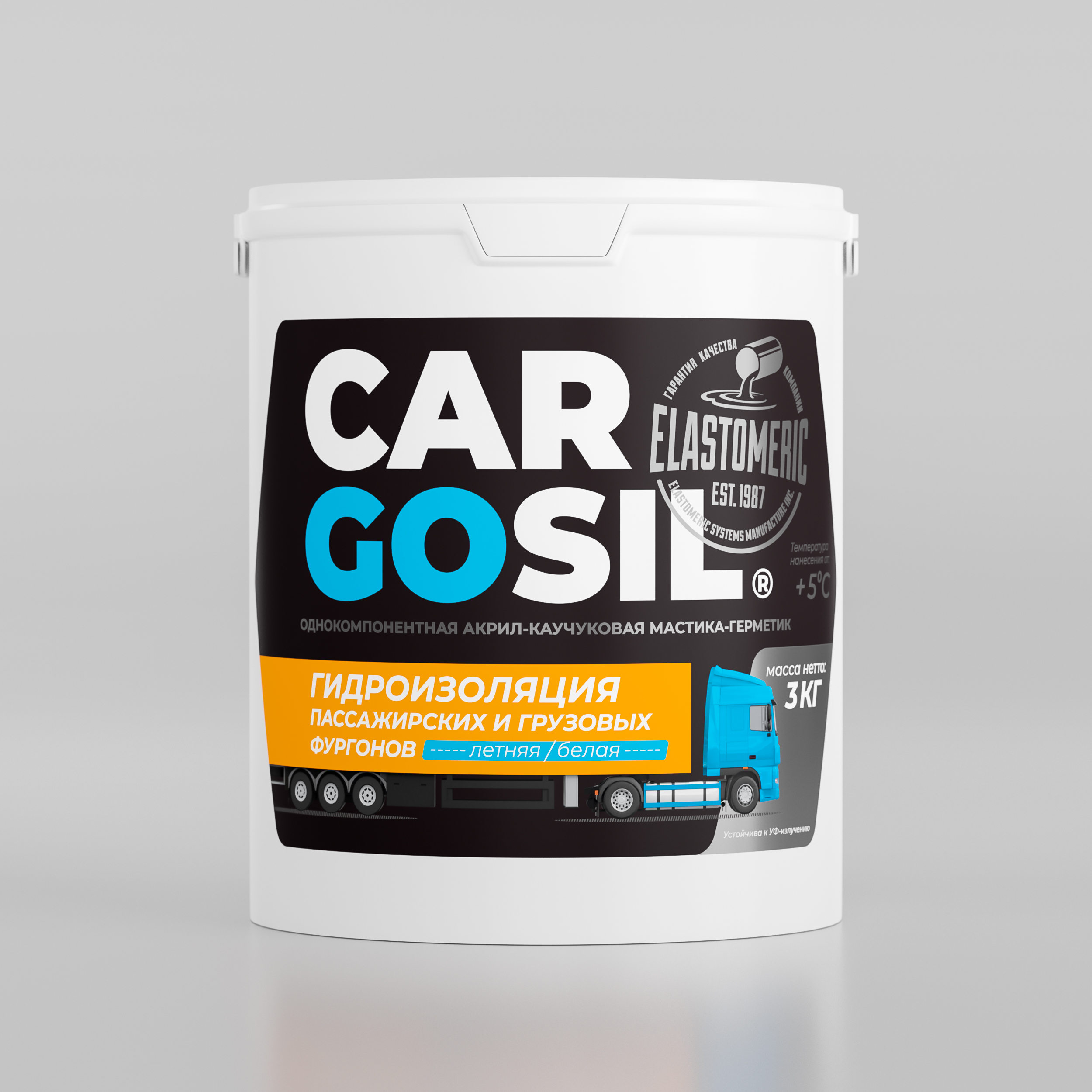 CARGOSIL – однокомпонентная, готовая к применению, гибридная мастика-герметик на основе акриловой смолы и синтетического каучука. Материал специально разработан для устранения протечек и гидроизоляции изотермических фургонов и полуприцепов, будок, трейлеров, мобильных киосков, контейнеров, домов на колесах и средств общественного транспорта. Применяется в системе с армирующей, самоклеящейся полиэфирной лентой Эластомерик Тейп. Система создает надежный барьер и противостоит проникновению воды под элементы обшивки даже на высокой скорости. Система может применяться на металлических (в том числе алюминиевых), пластиковых, композитных, деревянных и ранее окрашенных поверхностях, а так же для ремонта порезов и разрывов тентов из ПВХ.
