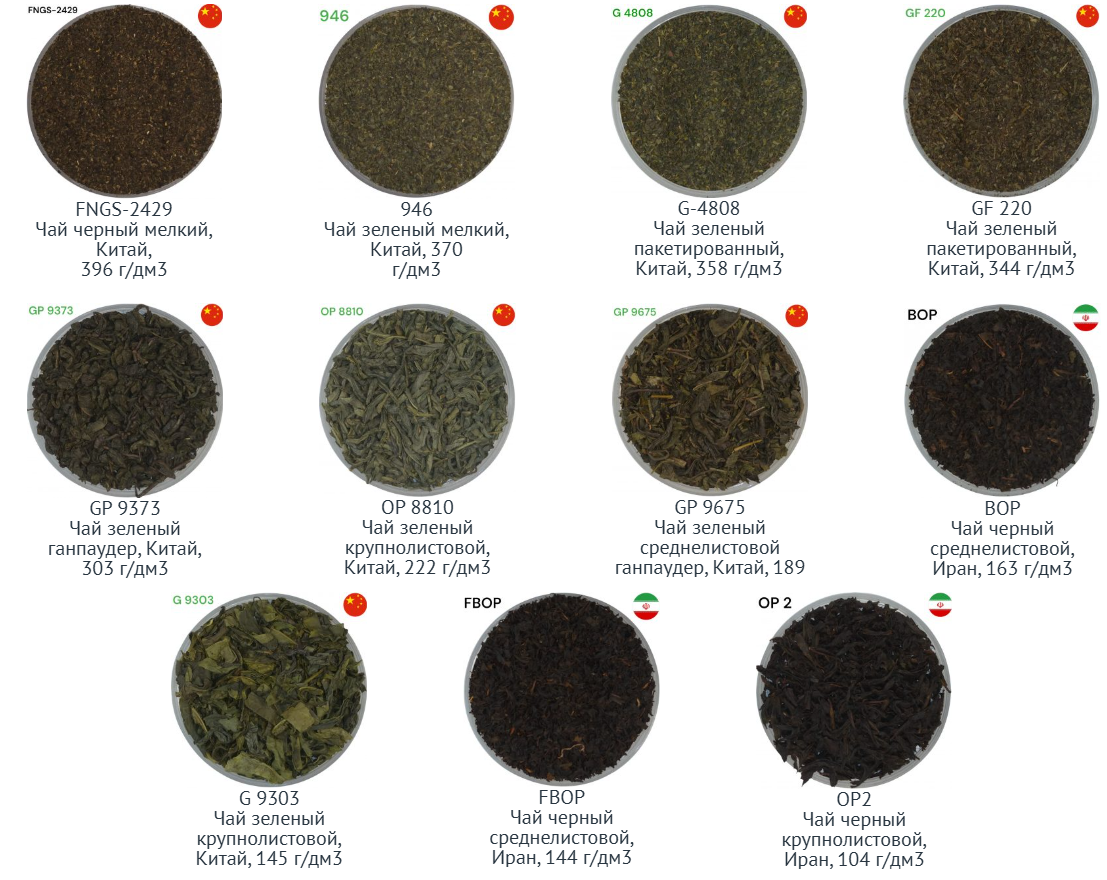 Широкий ассортимент черного и зеленого чая Китай, Иран. Плотность 100 - 400 г/дм3 - мелкая фракция (fannings), ганпаудер (GP), среднелистовой, крупнолистовой - оптом в наличии со склада в МО, Нахабино.
