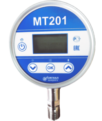 Манометр цифровой МТ201 с автономным питанием предназначен для измерения давления неагрессивных, некристаллизующихся жидкостей, газов и паров с отображением текущего значения давления на цифровом индикаторе. Наличие специальной отметки в свидетельстве о поверке позволяет использовать МТ201 в качестве эталона N-разряда. Конструкция манометра обеспечивает возможность заряда аккумулятора с помощью разъема Mini-USB, при этом предусмотрена автономная работа без подзарядки в течение 2000 часов.