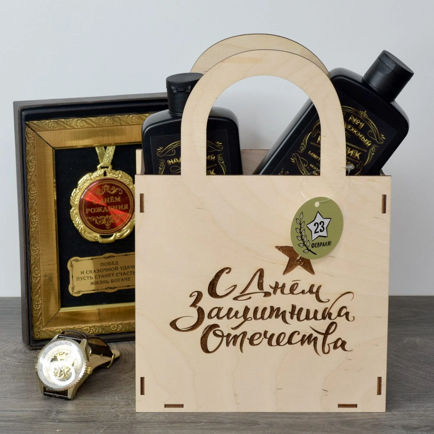 Подарите своим близким и коллегам уникальный подарок, упакованный в стильную деревянную упаковку, специально созданную для празднования 23 февраля! Эта элегантная коробка не только подчеркнет значимость вашего презента, но и станет его настоящим украшением.