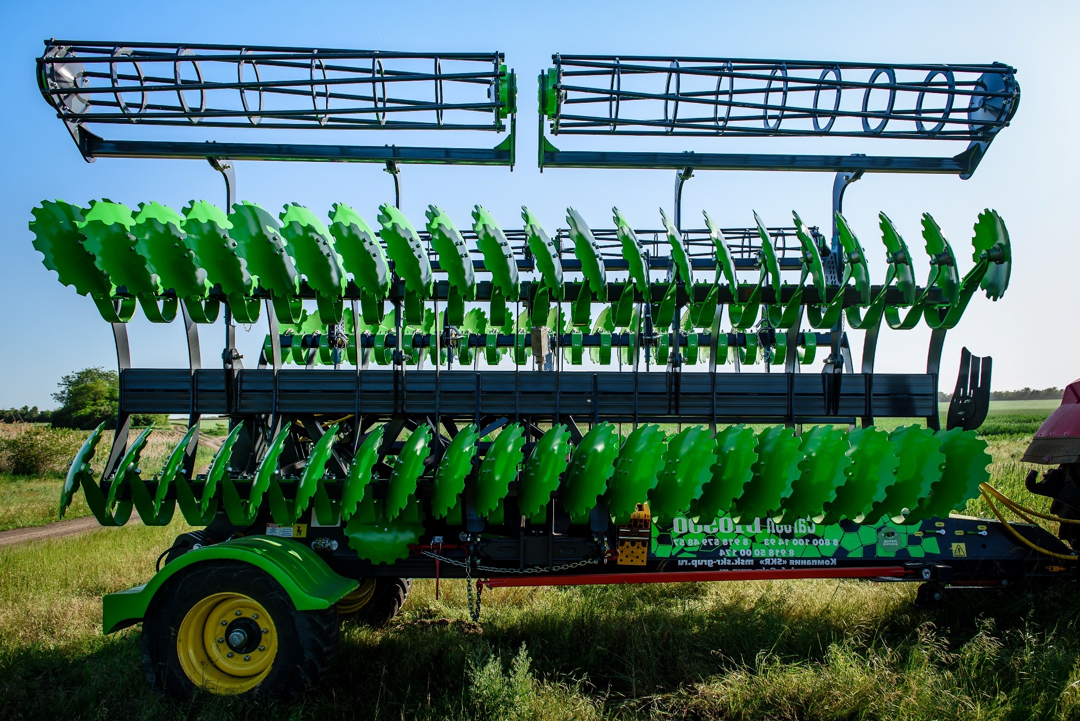 Дисковая борона Carbon D10500 на подпружиненной стойке (3D), как и лущильник дисковый, предназначены как для поверхностной стерневой обработки на лёгких и средних почвах, так и для предпосевной обработки почвы для посева по мульче или после вспашки. Может работать по влажной почве не забиваясь, идеально копирует практически любой рельеф почвы, за счет независимой работы каждого крыла по отдельности, выдерживает заданную глубину по всей ширине захвата, работает на глубину от 3 до 15 см, сборка бороны дисковой «SKR» производится на 90% из комплектующих нашего производства, исключение составляют лишь гидроцилиндры, колеса и подшипники.