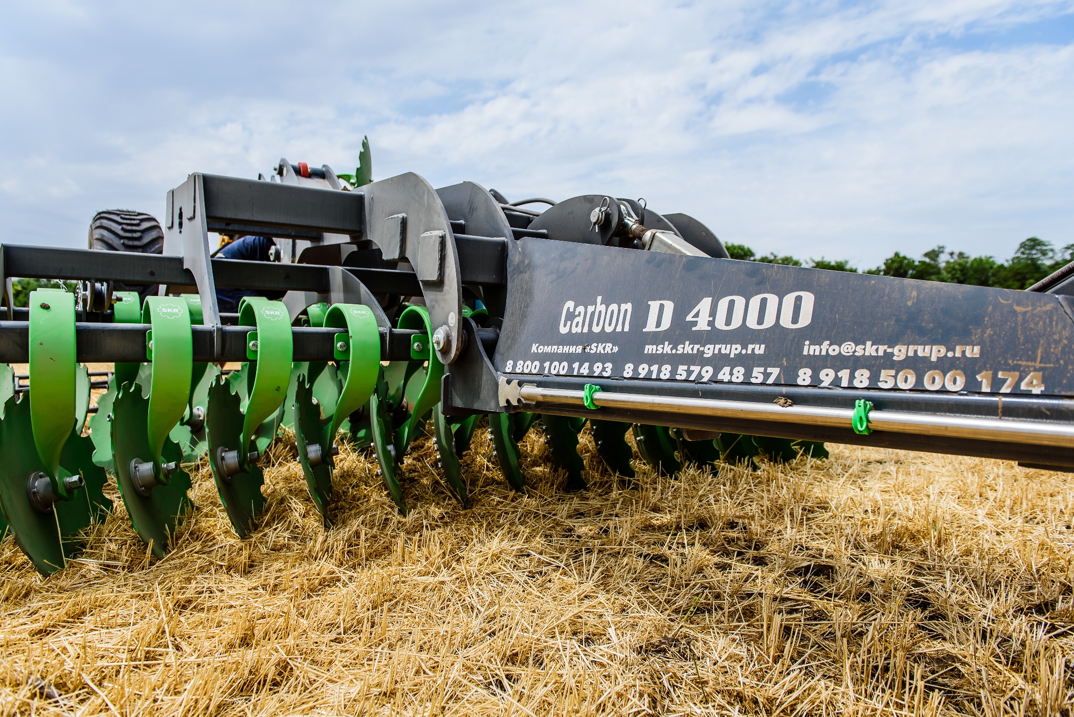 Дисковая борона Carbon D4000 на подпружиненной стойке (3D), как и лущильник, предназначены как для поверхностной стерневой обработки на лёгких и средних почвах, так и для предпосевной обработки почвы для посева по мульче или после вспашки. Может работать по влажной почве не забиваясь, идеально копирует практически любой рельеф почвы, за счет пружинной стоки, выдерживает заданную глубину по всей ширине захвата, работает на глубину от 3 см до 15 см, сборка бороны дисковой SKR производится на 90% из комплектующих нашего производства исключение составляют: гидроцилиндры, колеса, подшипники.