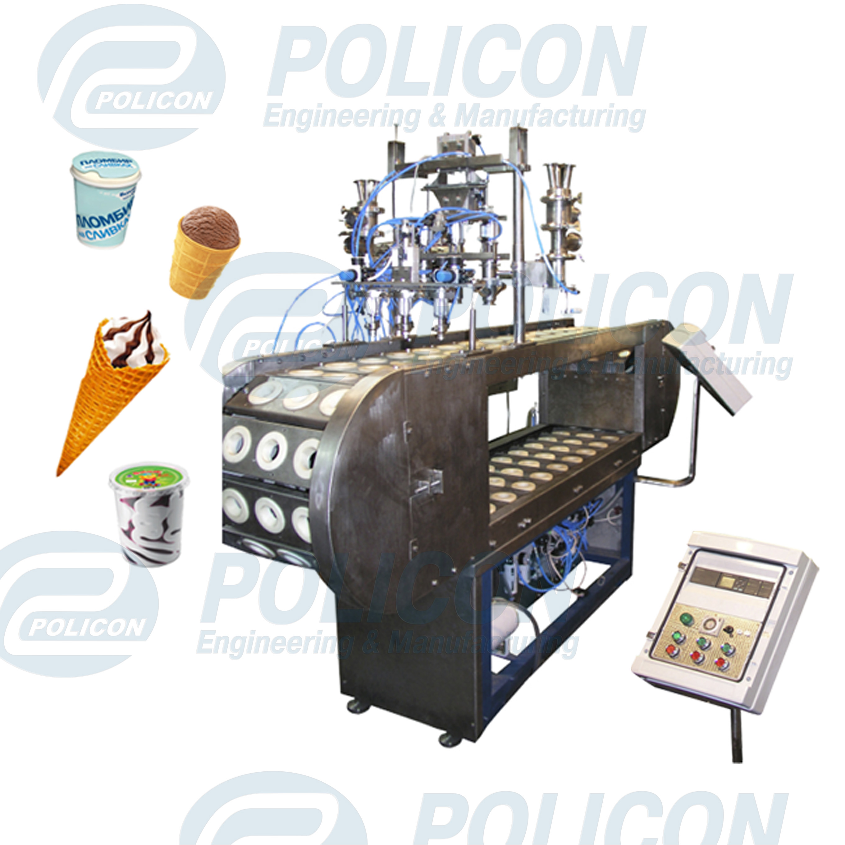 Дозатор мороженого 3-х поточный предназначен для фасовки мороженого в индивидуальную тару (стаканчики вафельные, бумажные, пластиковые, сахарные рожки, кювейты) с возможностью ввода джема.