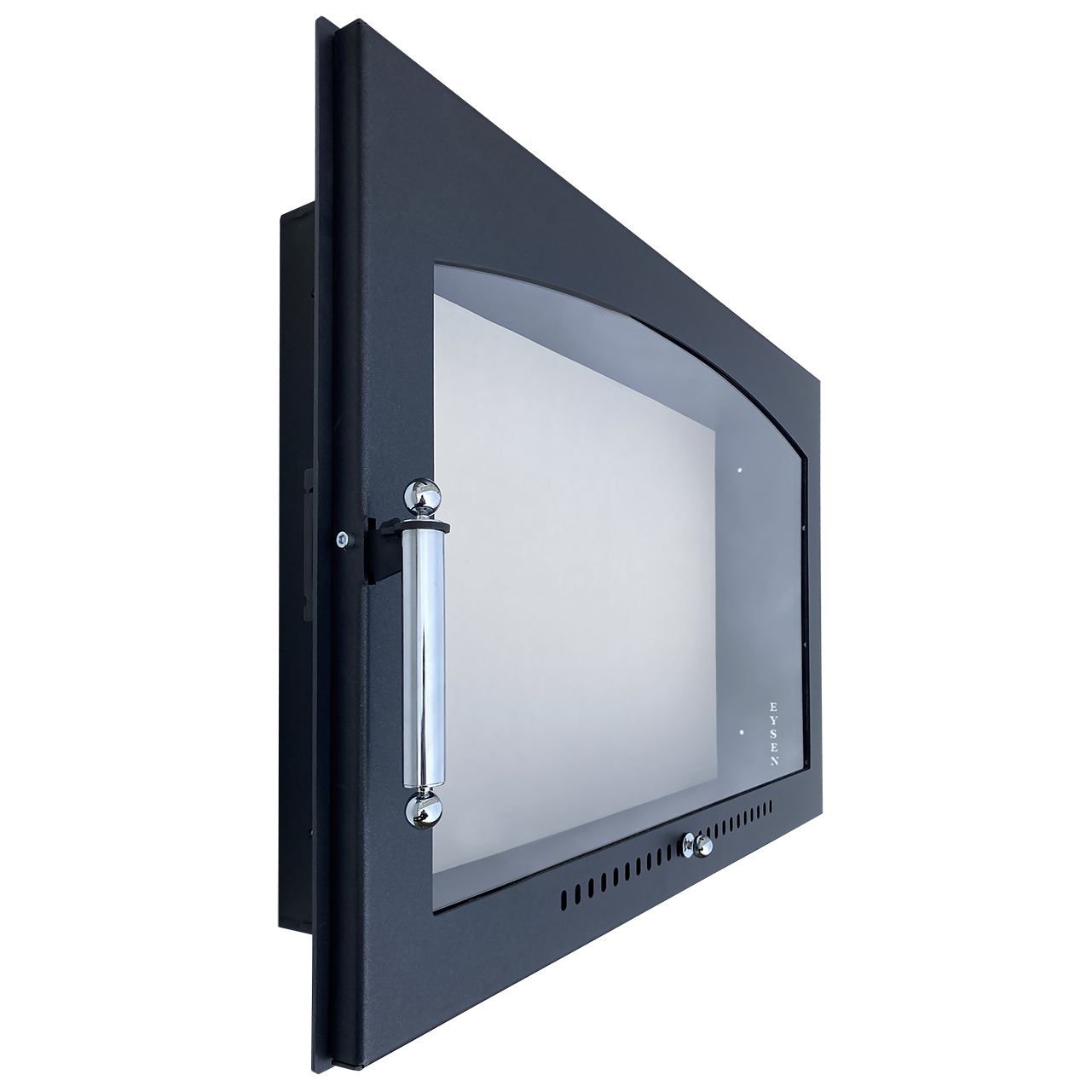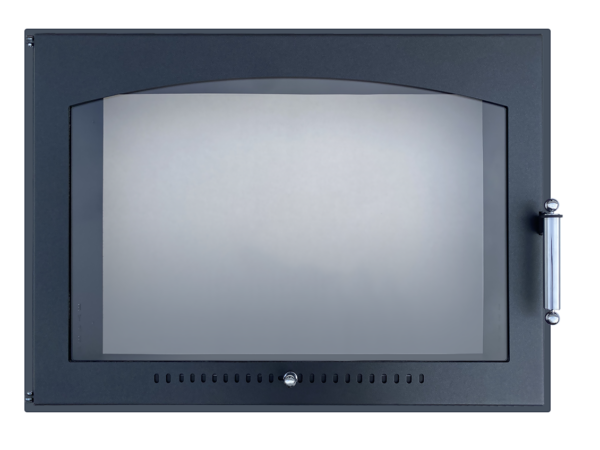 Встраиваемая каминная дверца Eysen для кирпичных каминов, выполнена из котловой стали толщиной 4 и 3 мм, обеспечивает безопасность и исключает случайное выпадение горящих углей во время процесса топки.