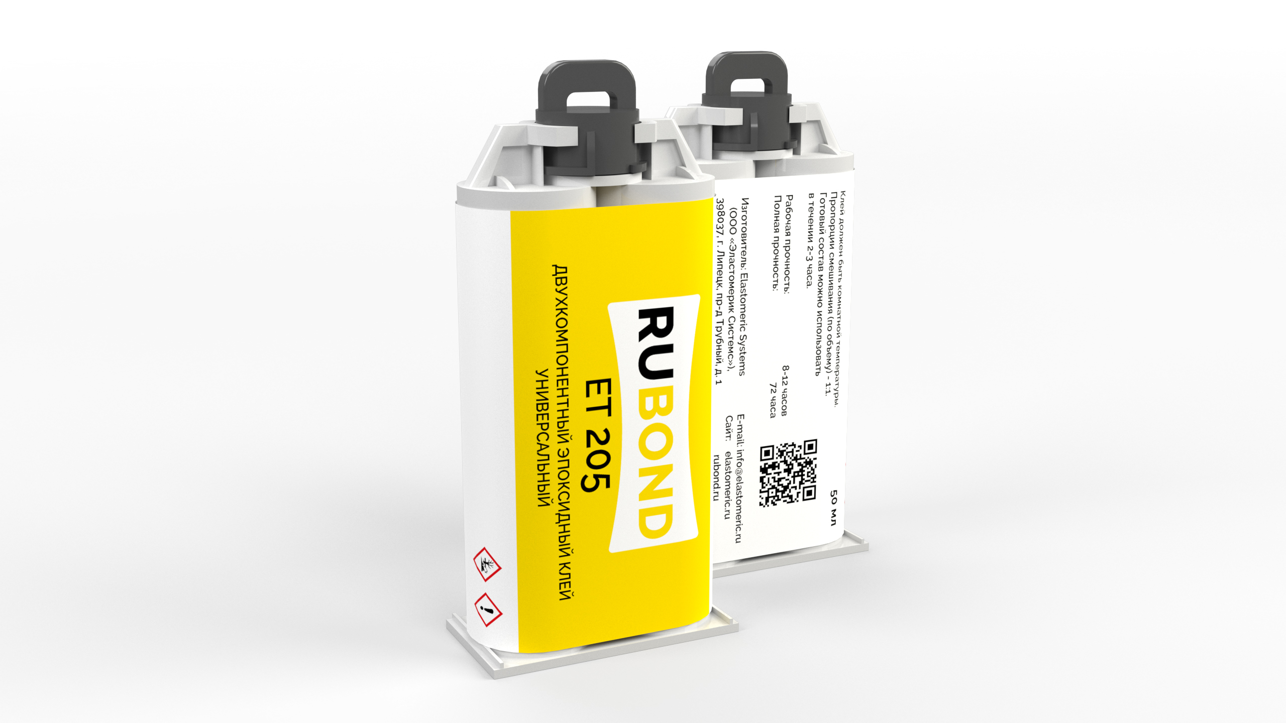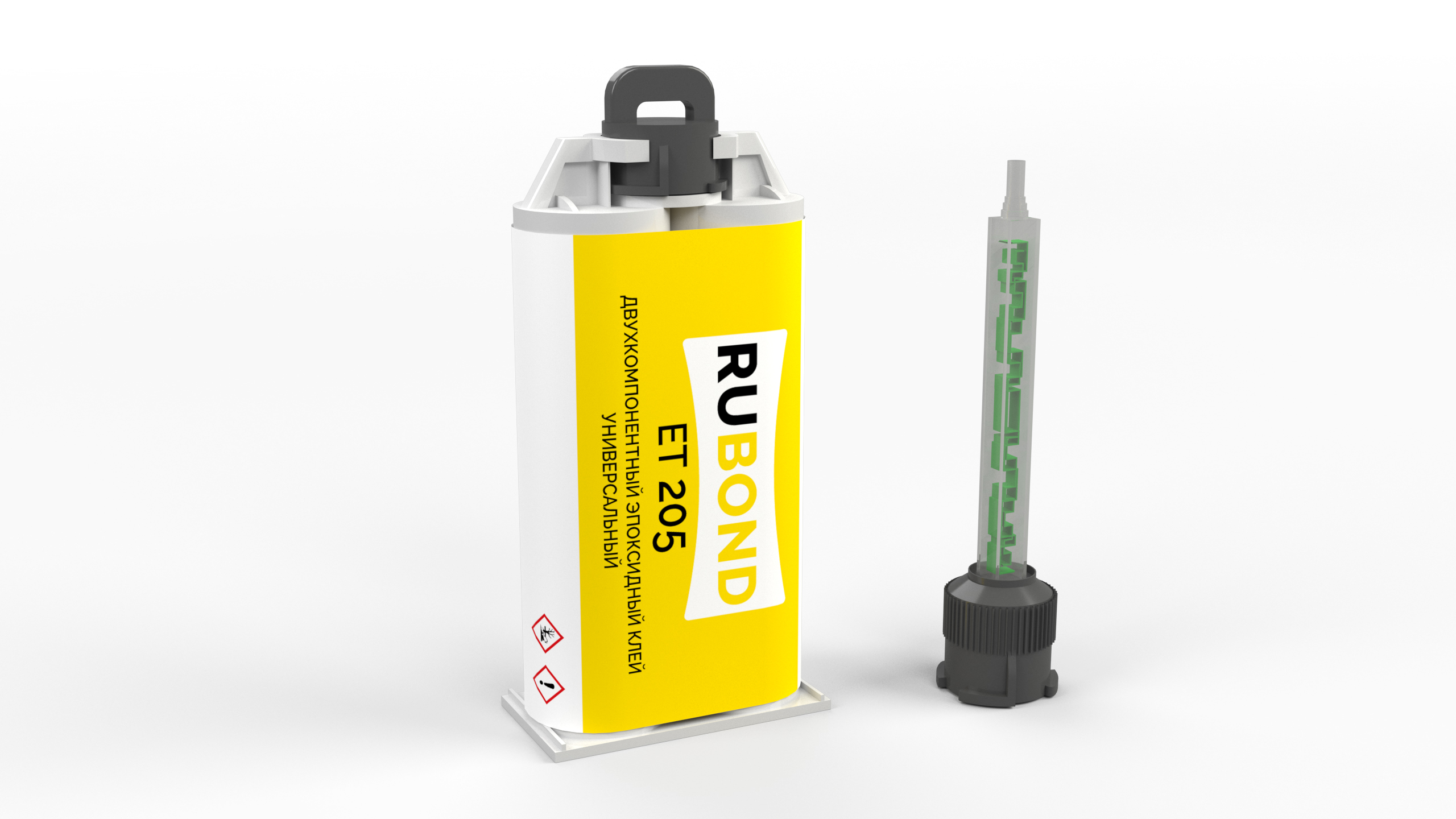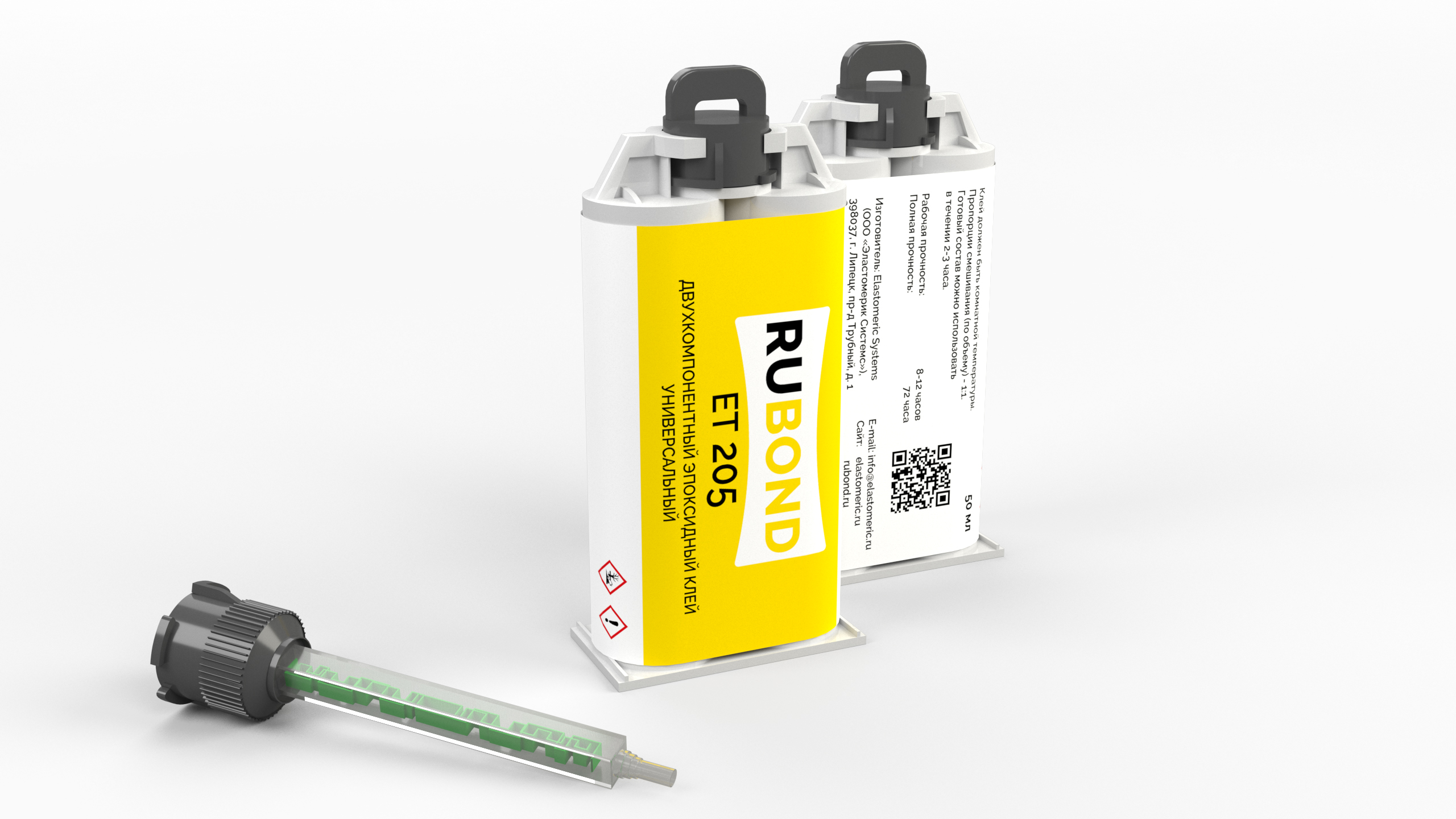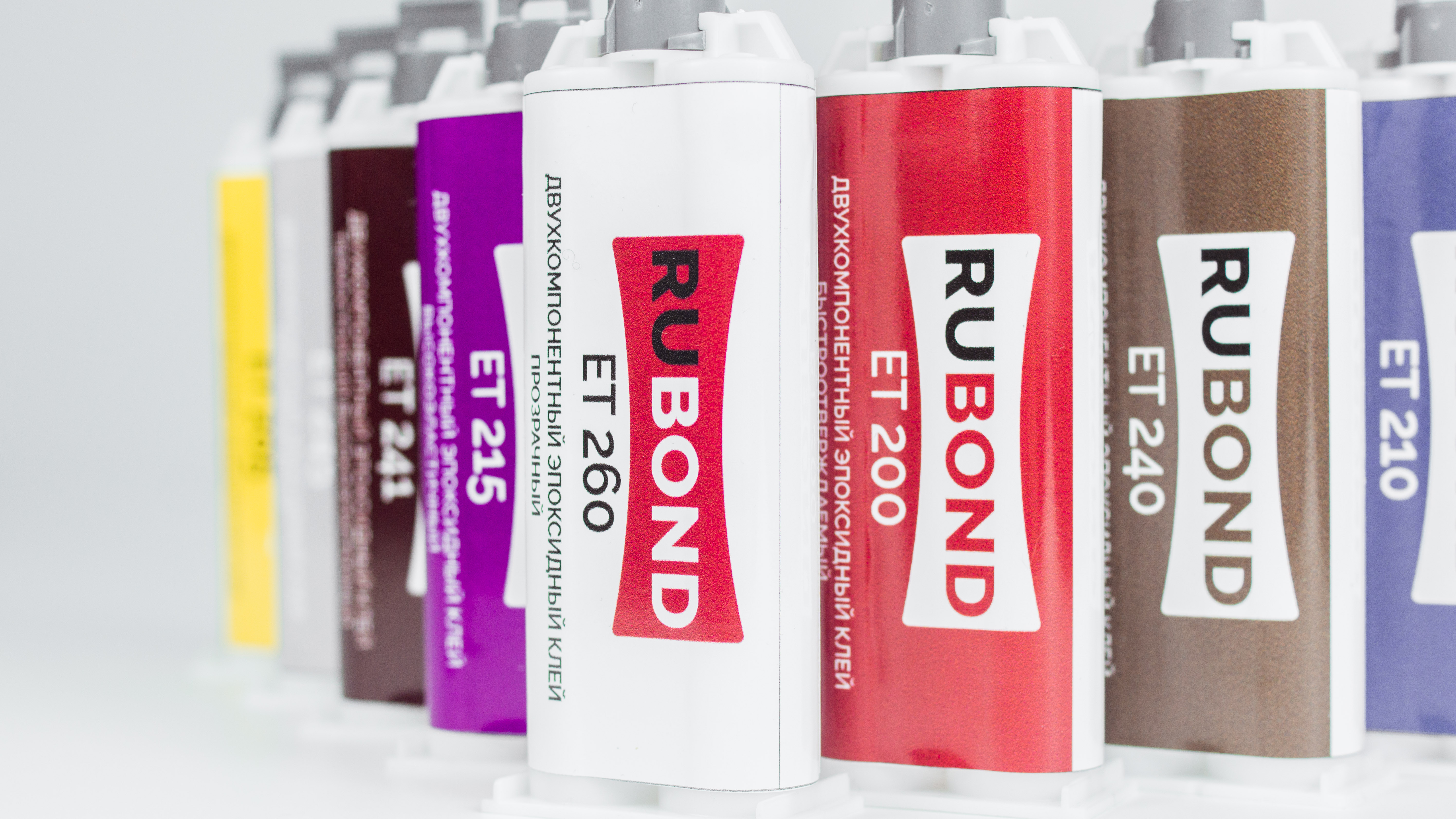 RuBond ET 205 упакован в специализированные шприцы, которые при использовании гарантируют идеальную пропорцию смешивания компонента А и компонента В по объёму, что обеспечивает достижение максимальных характеристик клея и оптимизирует его расход.