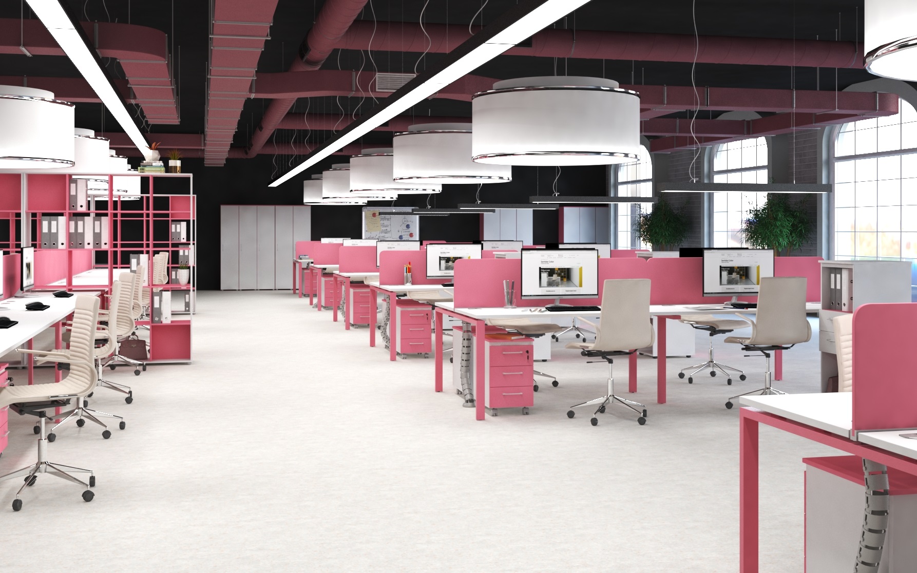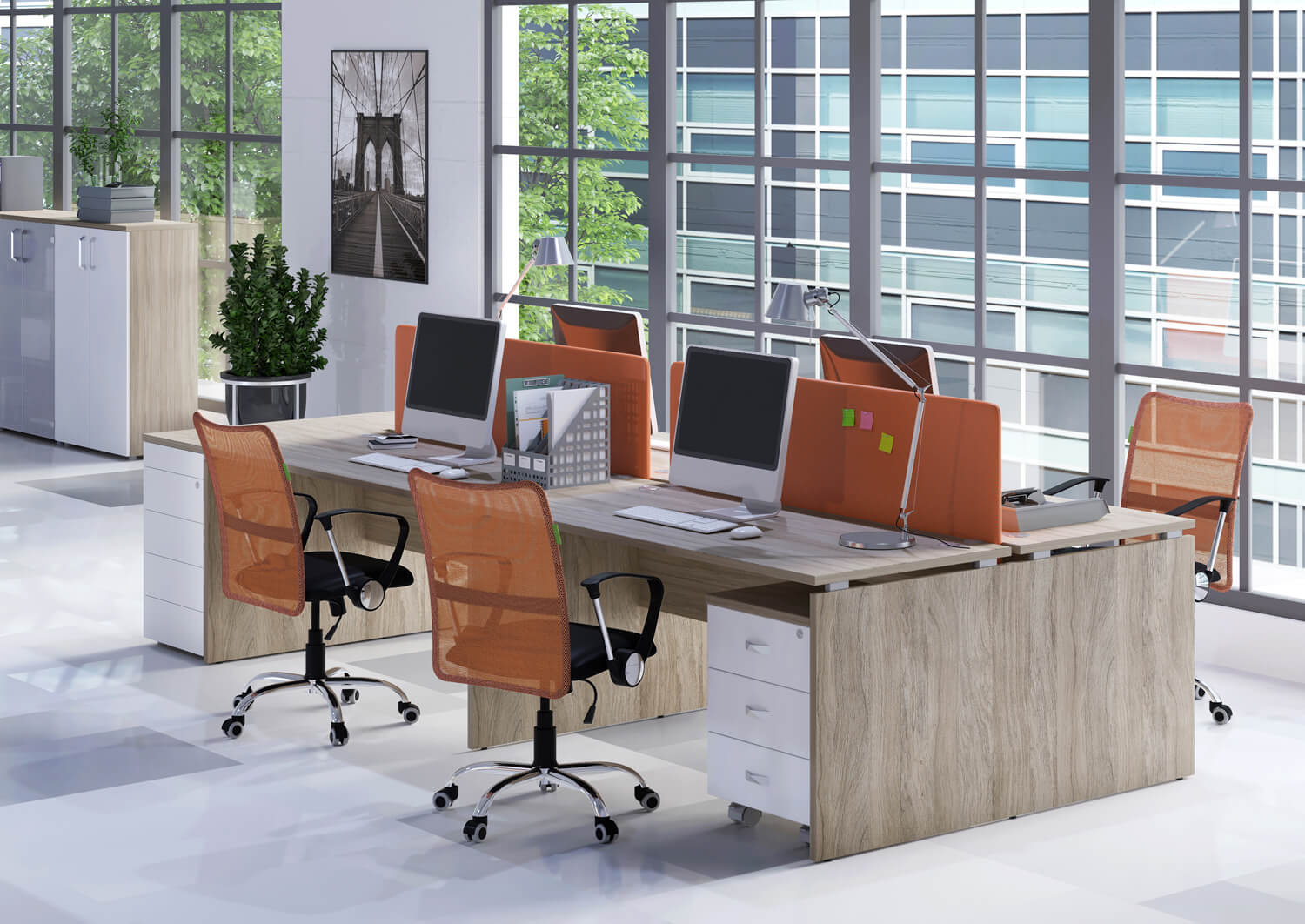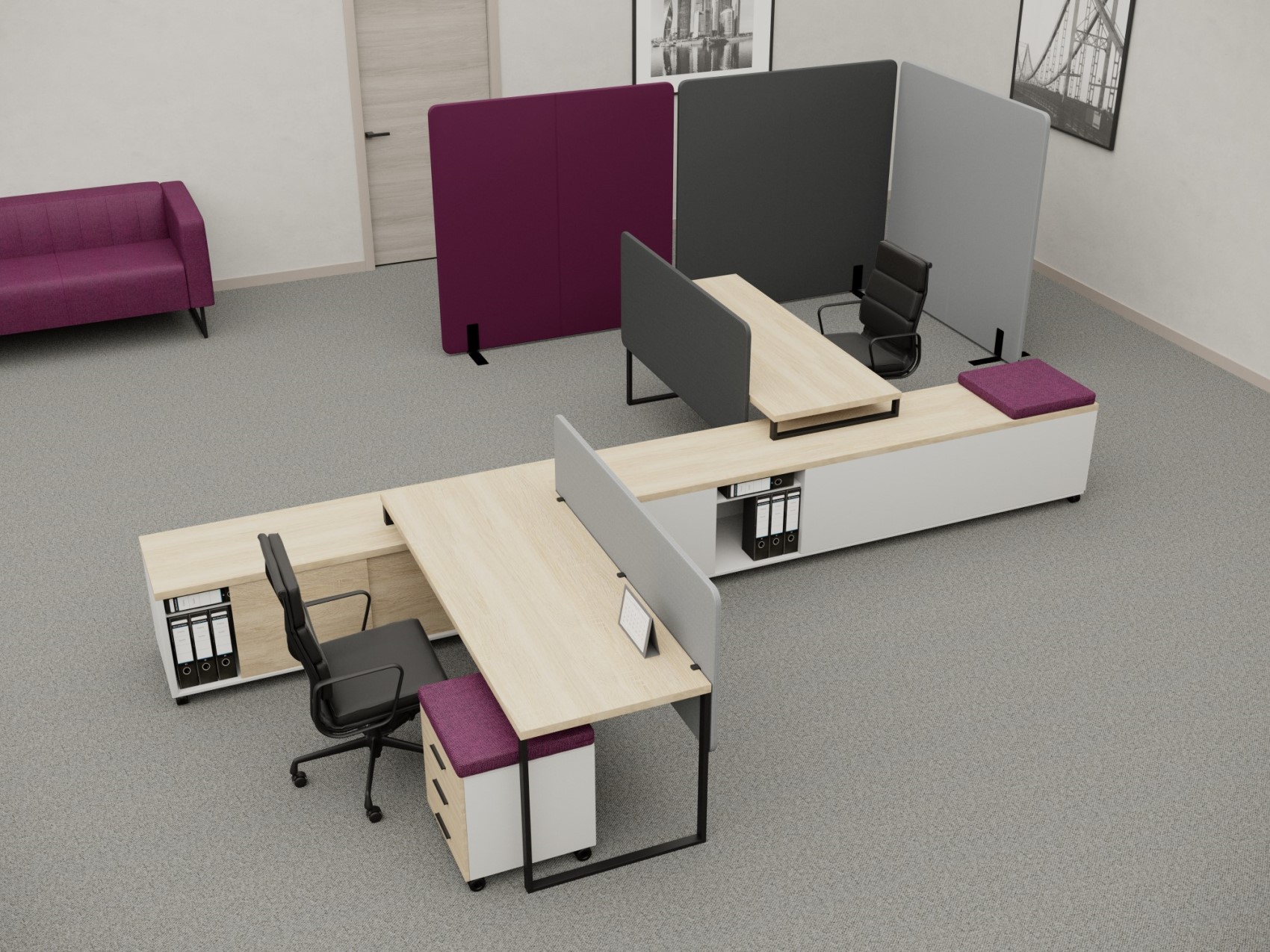 Офисные экраны для зонирования и организации личного рабочего пространства сотрудников. Мы поставляем экраны из ЛДСП в цветах под различные породы дерева и из ДСП, обитой уплотнителем и цветной тканью.