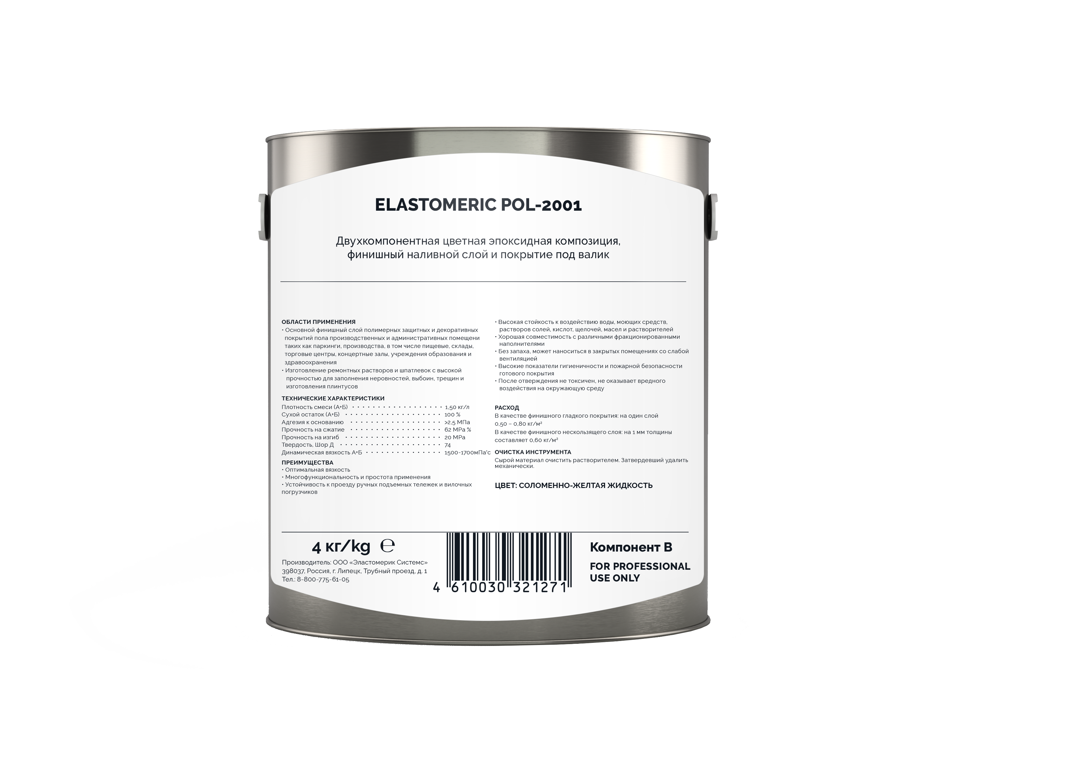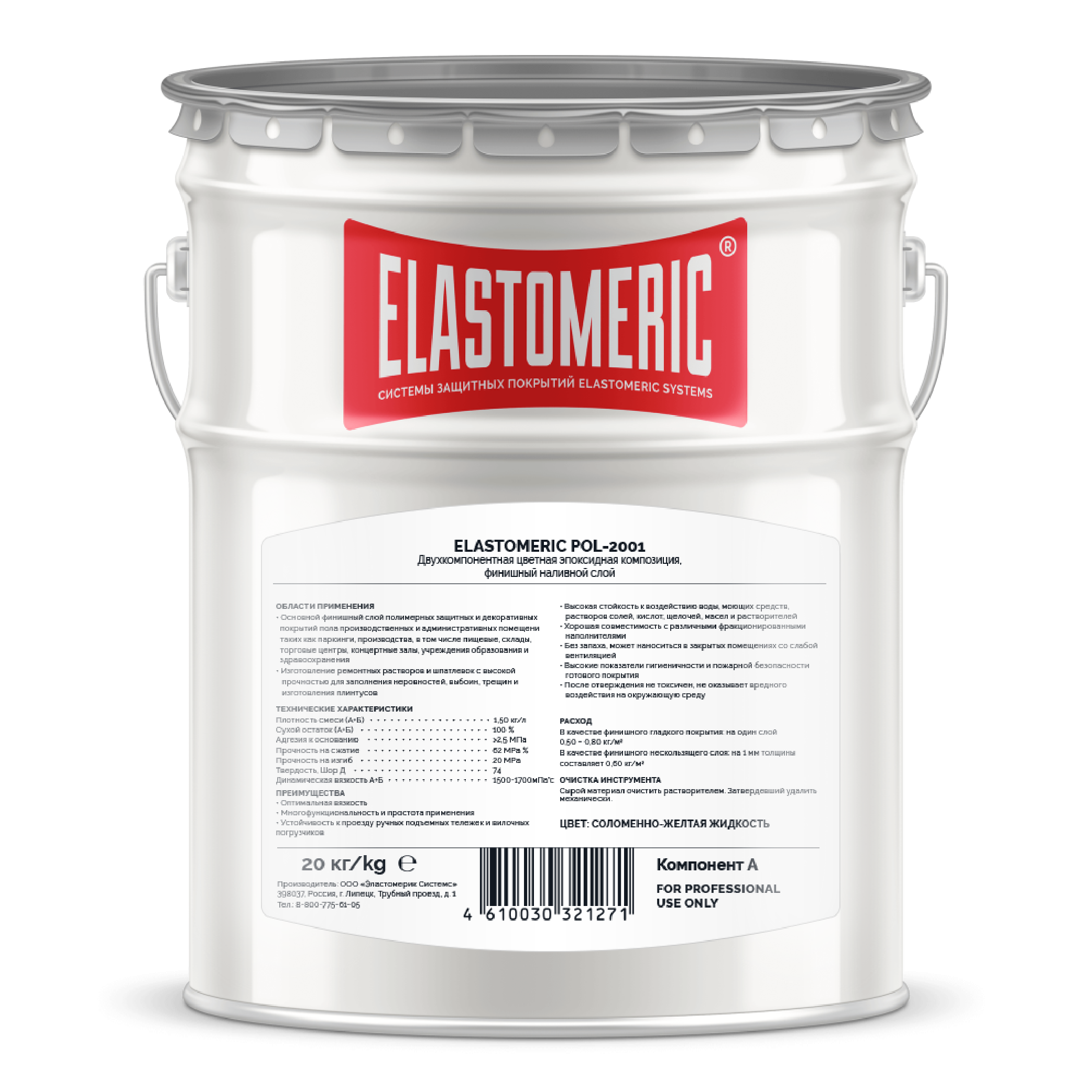 ELASTOMERIC Pol - 2001 – двухкомпонентная окрашенная самонивелирующаяся эпоксидная композиция с высокой устойчивостью к механическим и умеренным химическим нагрузкам. Применяется для устройства напольных покрытий на промышленных объектах, паркингах, помещениях общего пользования. Не содержит органические растворители.