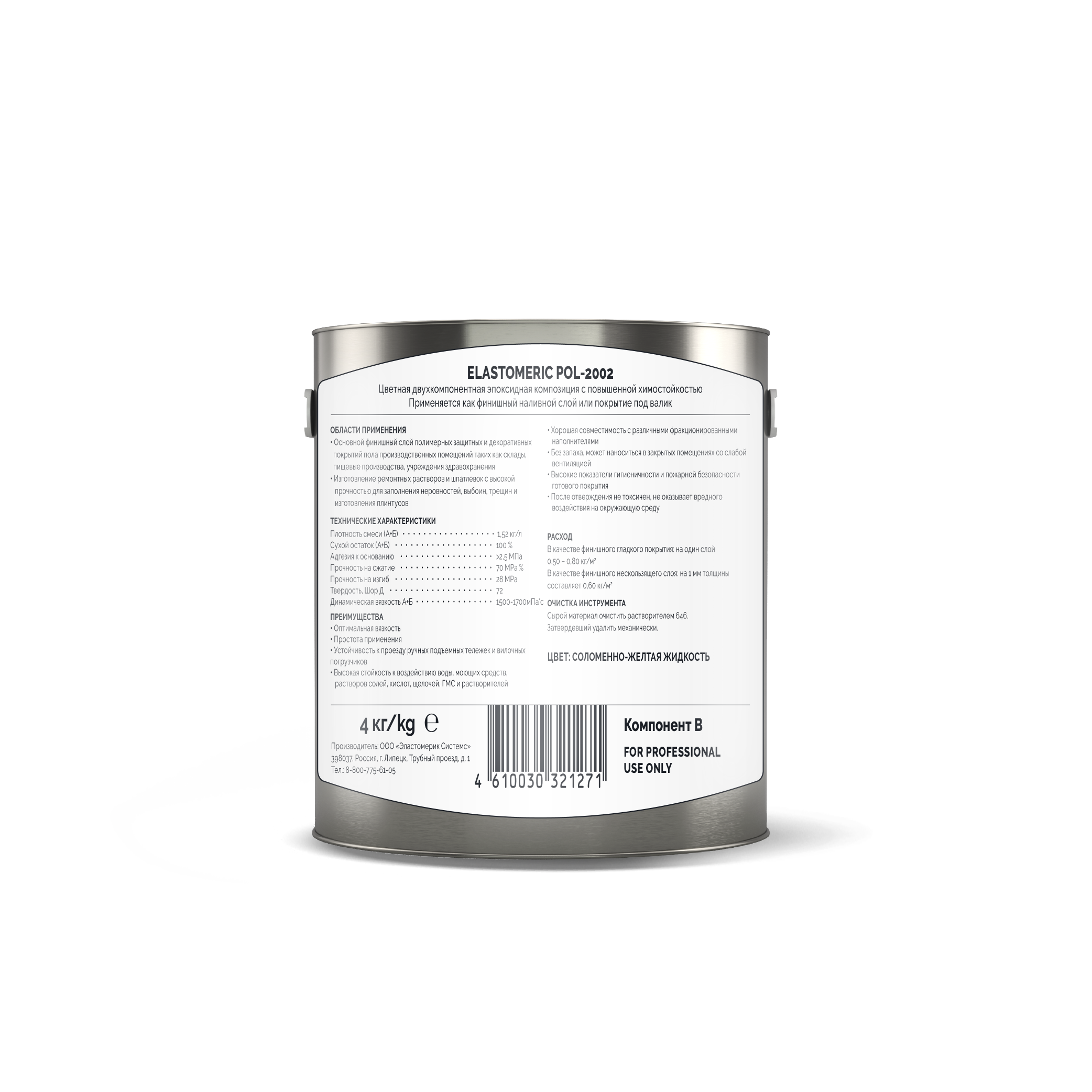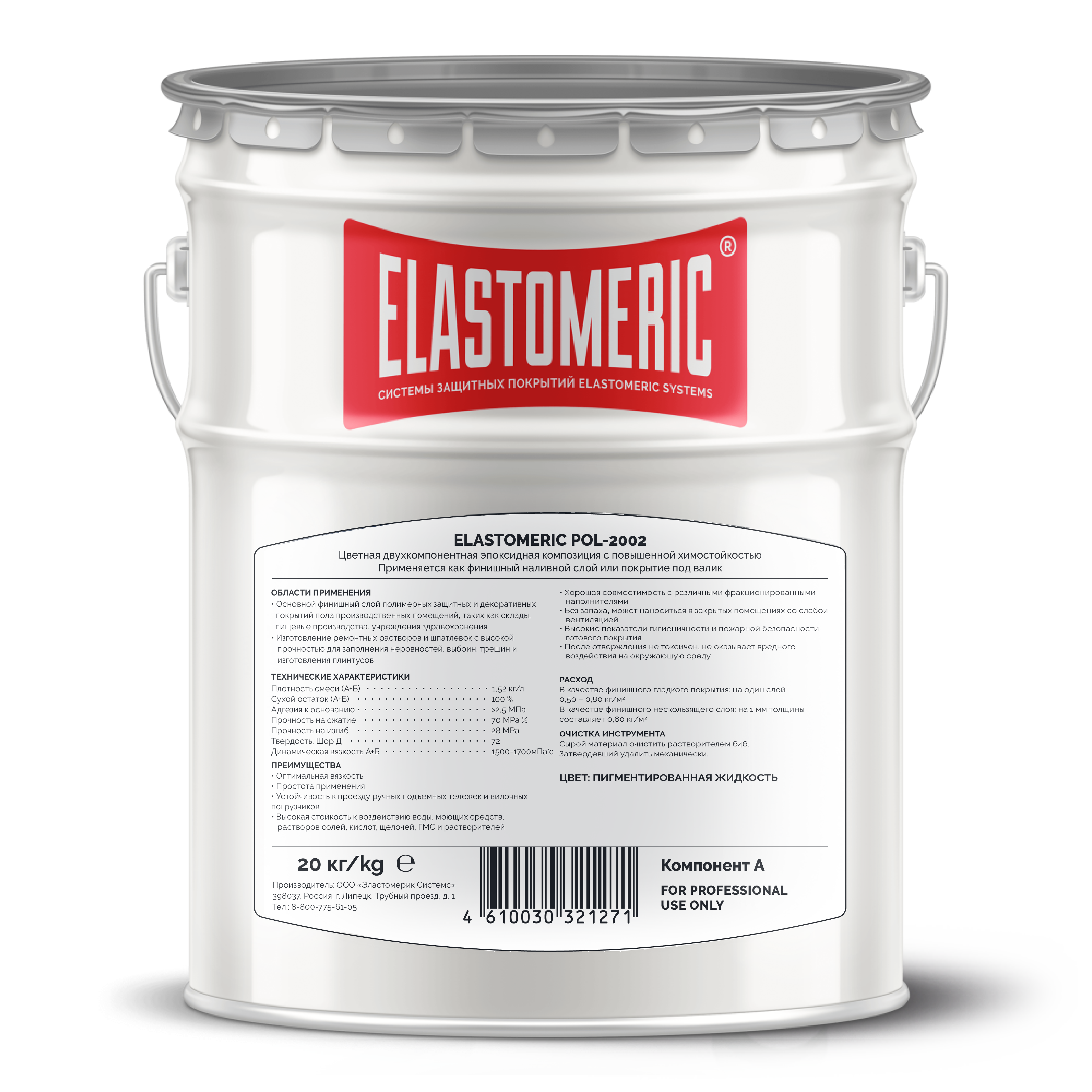 Elastomeric Pol - 2002 – двухкомпонентная окрашенная самонивелирующаяся эпоксидная композиция с высокой устойчивостью к химическим к механическим нагрузкам. Применяется для устройства напольных покрытий на промышленных объектах, складах, мастерских, помещениях с частой уборкой. Не содержит органические растворители.