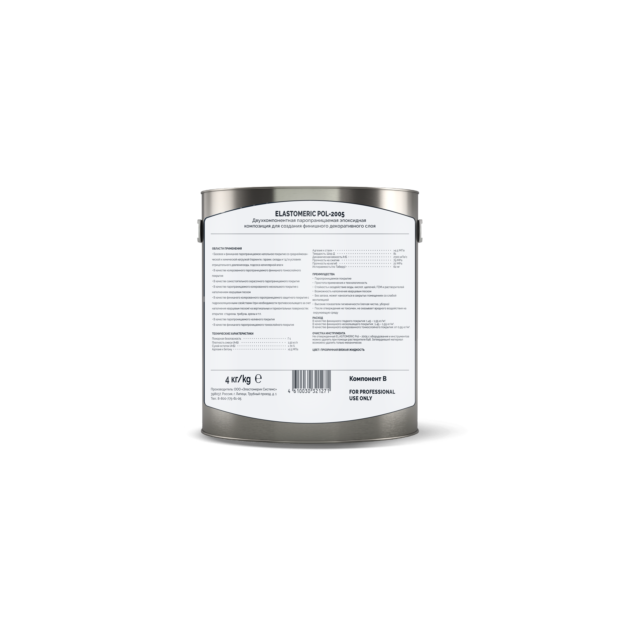 двухкомпонентная окрасочная паропроницаемая эпоксидная композиция с хорошей устойчивостью к химическим и механическим воздействиям. Не содержит органические растворители.