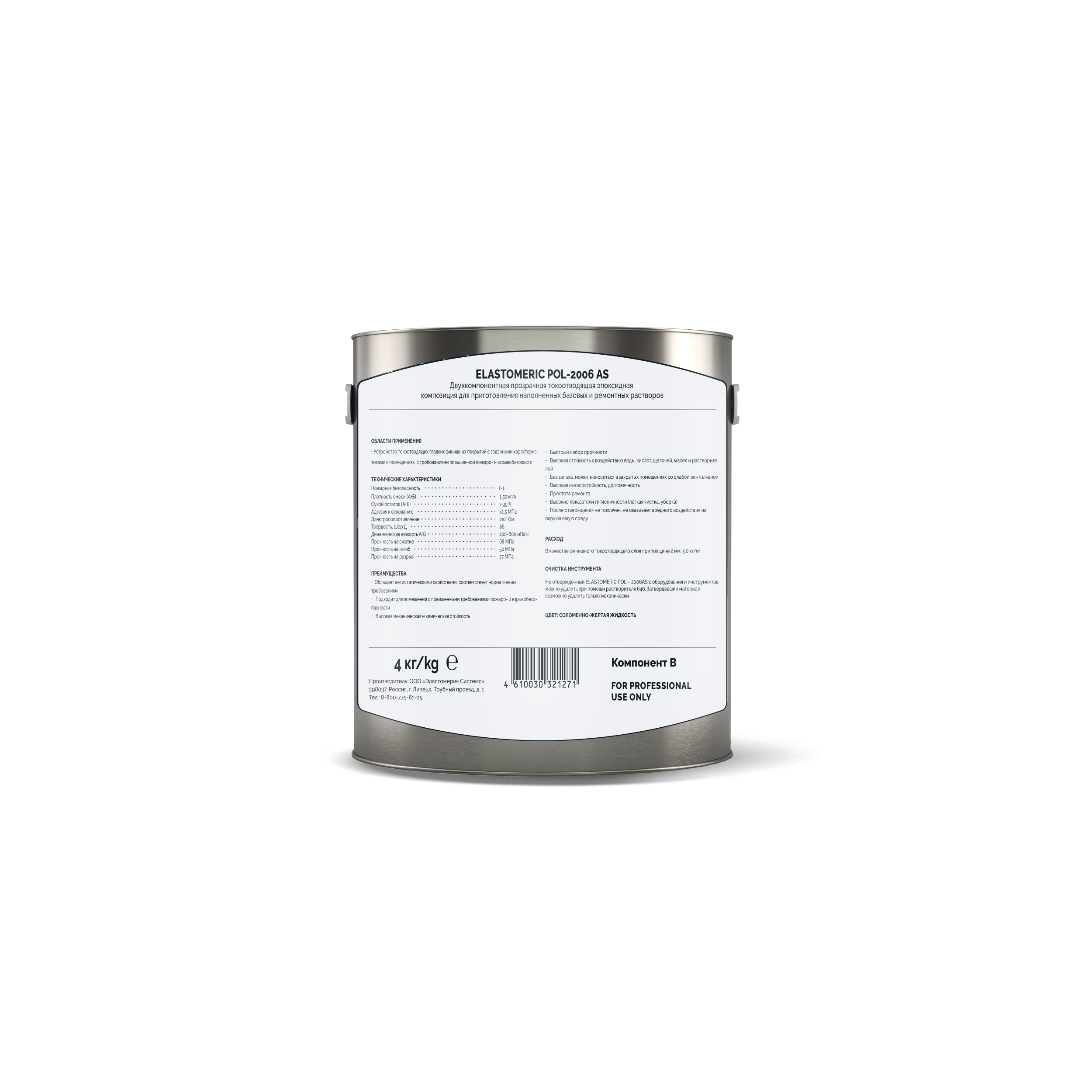ELASTOMERIC POL – 2006AS – двухкомпонентная окрашенная токоотводящая эпоксидная композиция с высокой устойчивостью к химическим и механическим воздействиям. Применяется в качестве финишного слоя в системе антистатических напольных покрытий. Не содержит органические растворители.