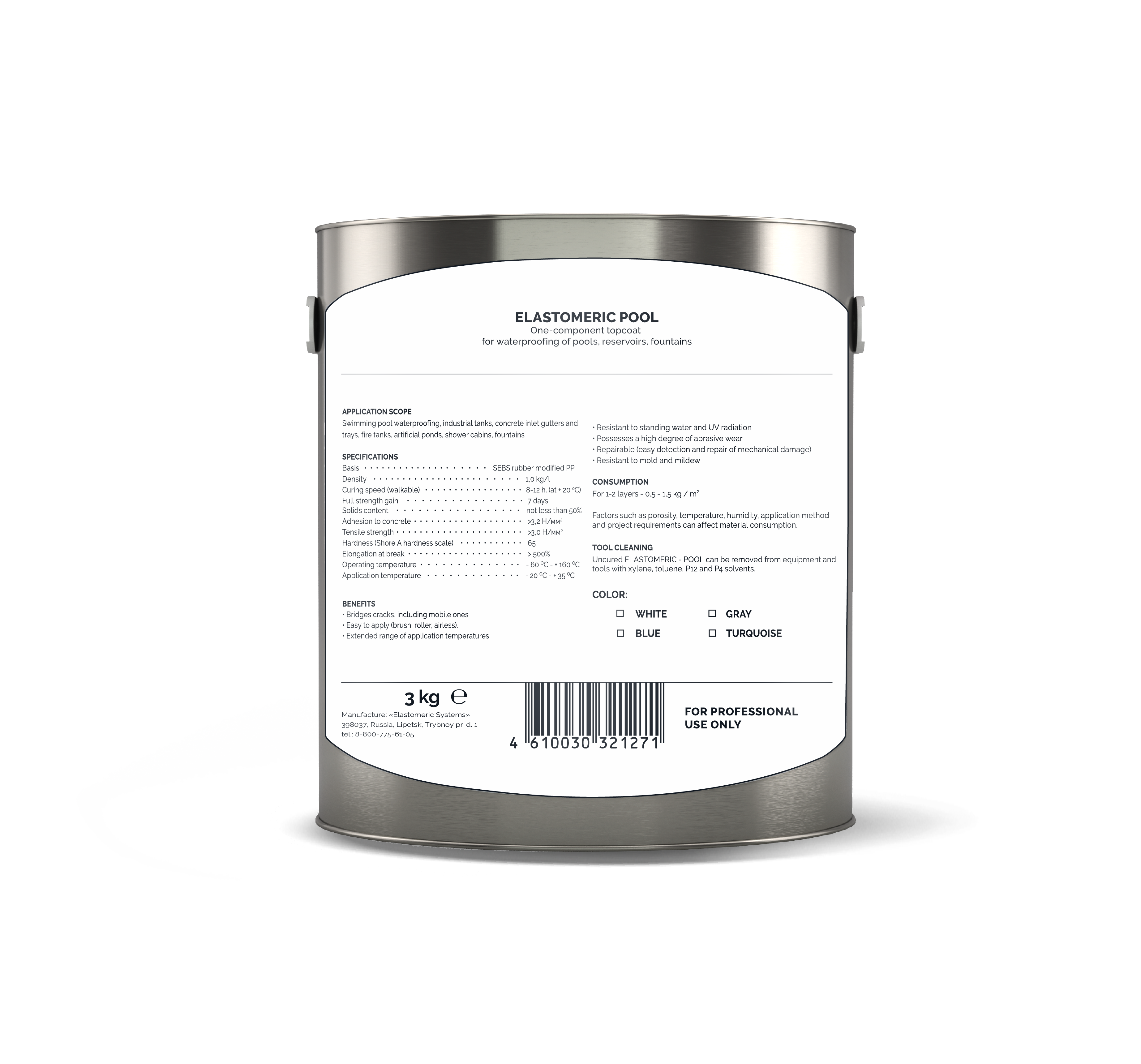 ELASTOMERIC – POOL (3кг белый) Финишное однокомпонентное покрытие для гидроизоляции бассейнов, резервуаров, фонтанов.
