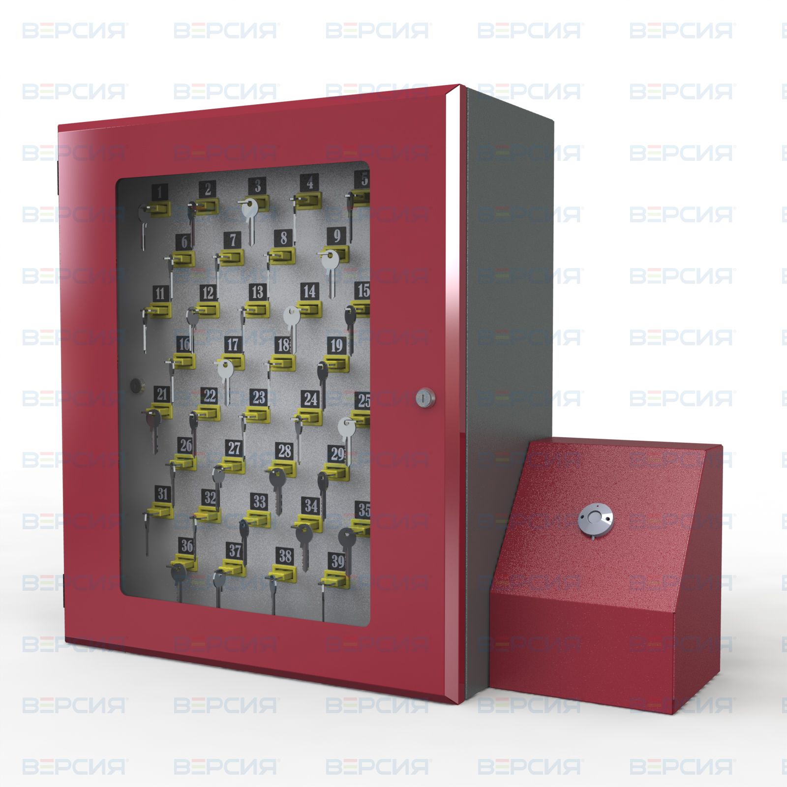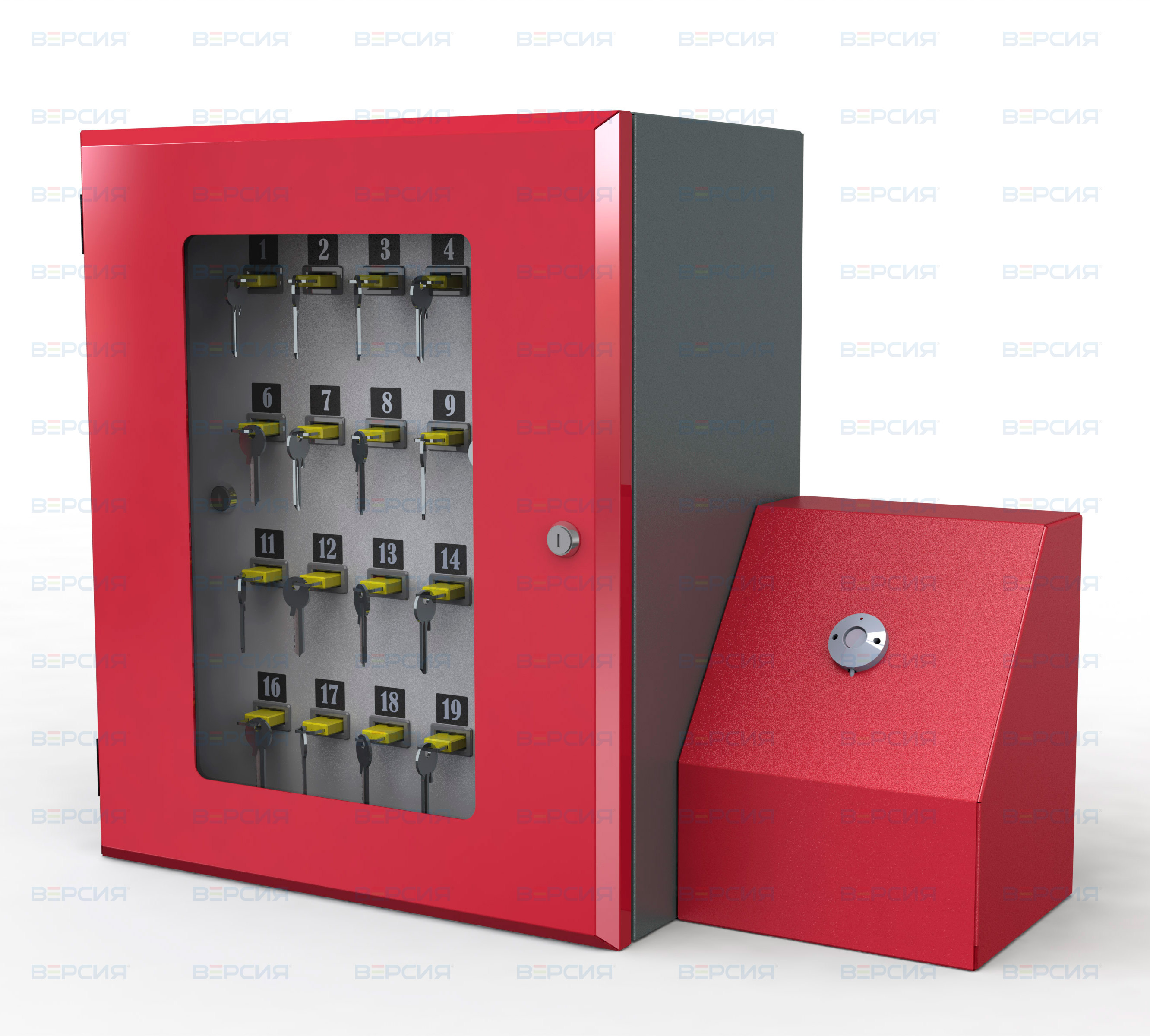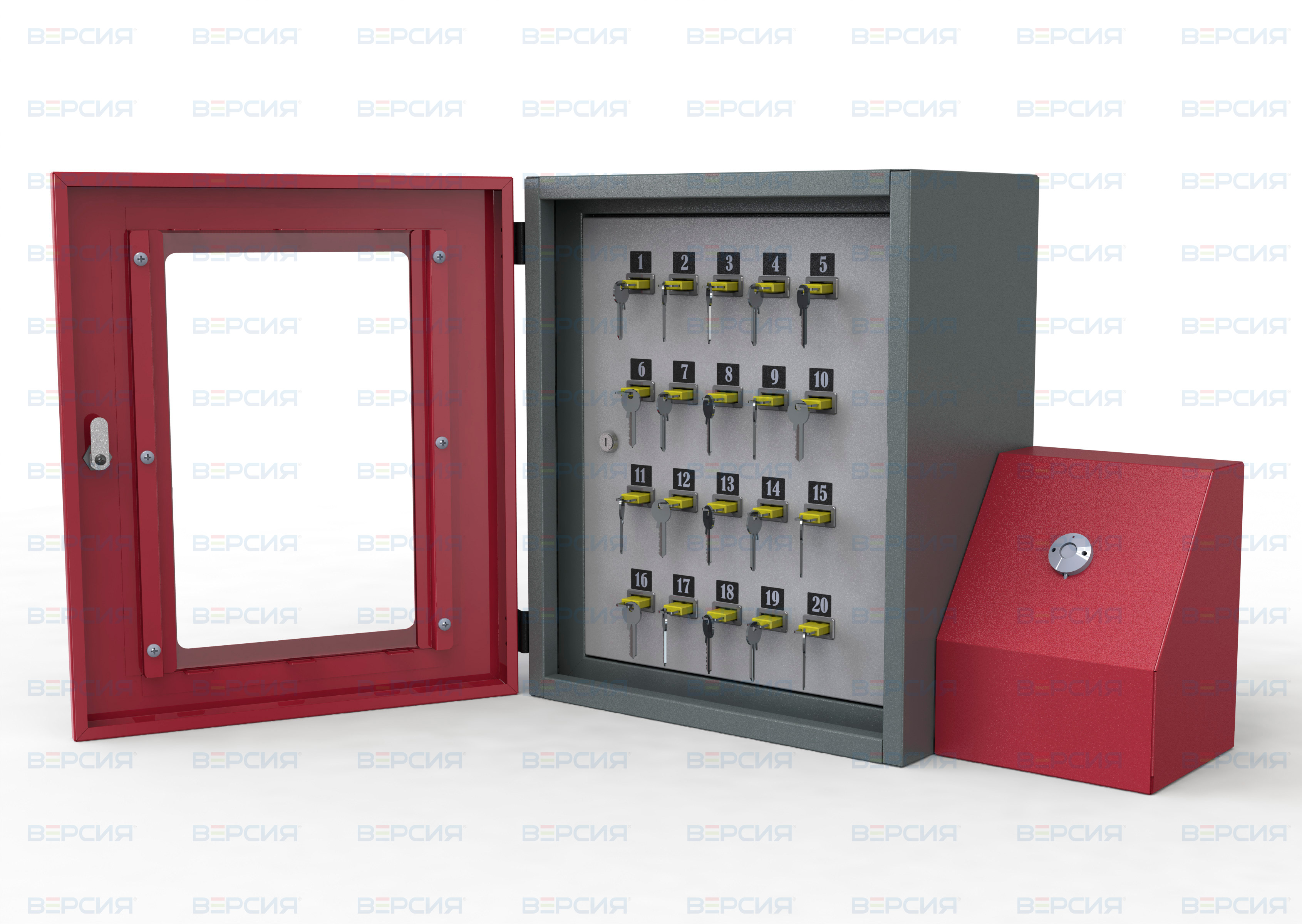 Предназначена для хранения 20 ключей. Имеет электронный замок. В отличии от обычной ключницы значительно упрощает процедуру приема и сдачи ключей от помещений, поскольку дополнительный персонал для контроля за такими действиями не требуется. Все процедуры фиксируется автоматически.