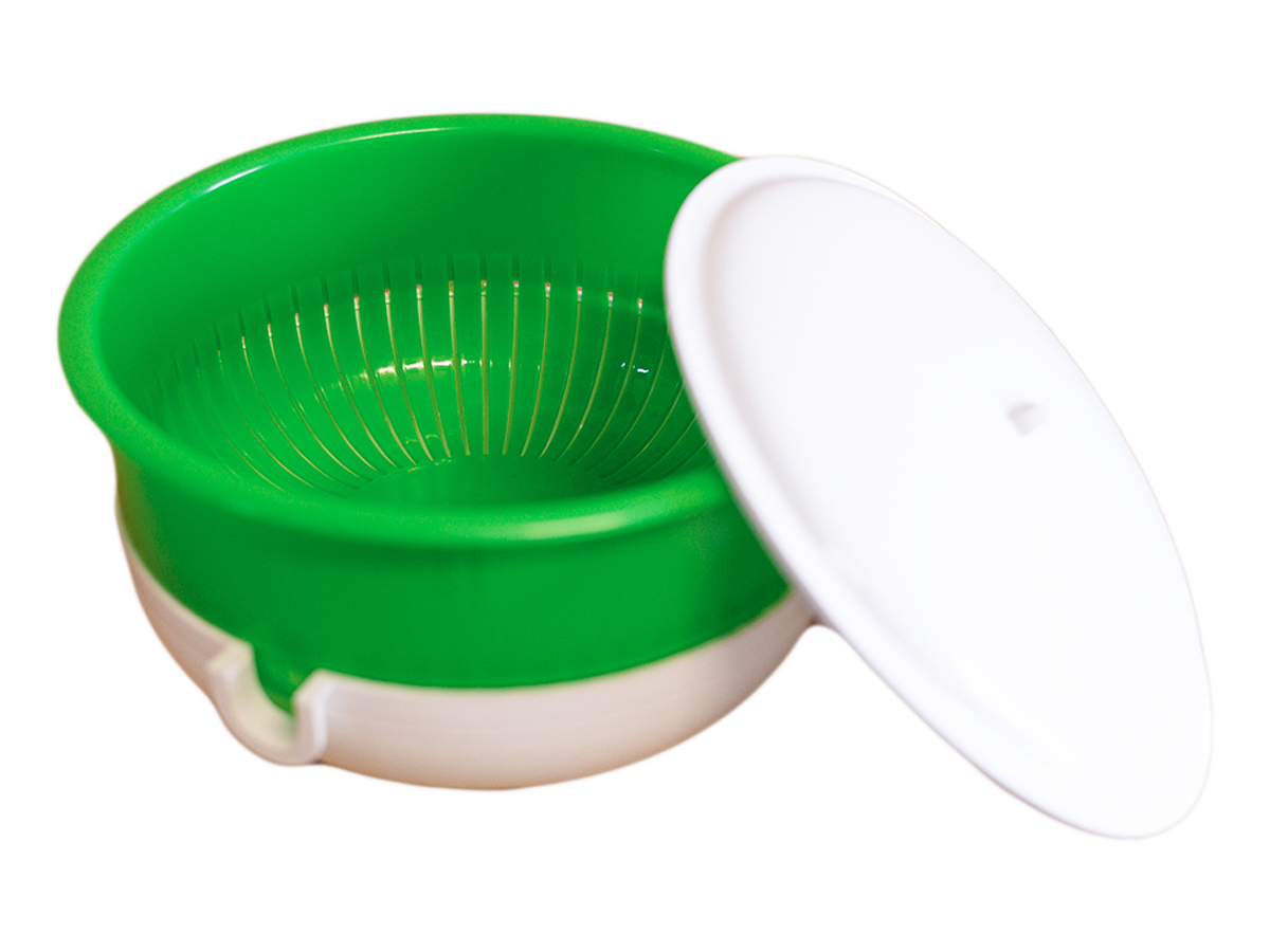 Емкость для мойки овощей и фруктов объемом 3 литра. Изготовлена из первичного сырья, полипропилена пищевого назначения. Не вредит здоровью - безопасна. Универсальна - можно использовать не только для мойки овощей и фруктов, но и для разморозки пищевых продуктов и их хранения. Удобна в использовании - наличие крышки, съемной средней чаши, носика для слива жидкости. Стойкая к механическим воздействиям, а также к растворам кислот и действию мыльных щелочных растворов.