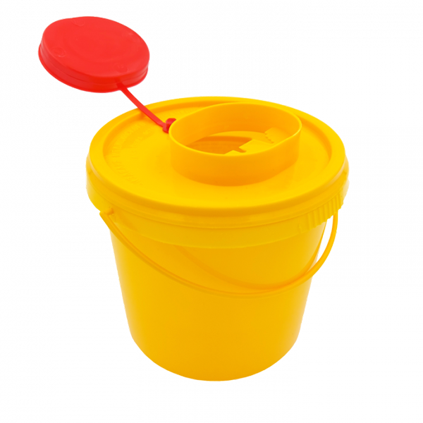 Комплектация: емкость (ведро), крышка-заглушка с иглосъемником, маркировочная наклейка. Цвет желтый/ красный (согласно классу опасности - Б,В).