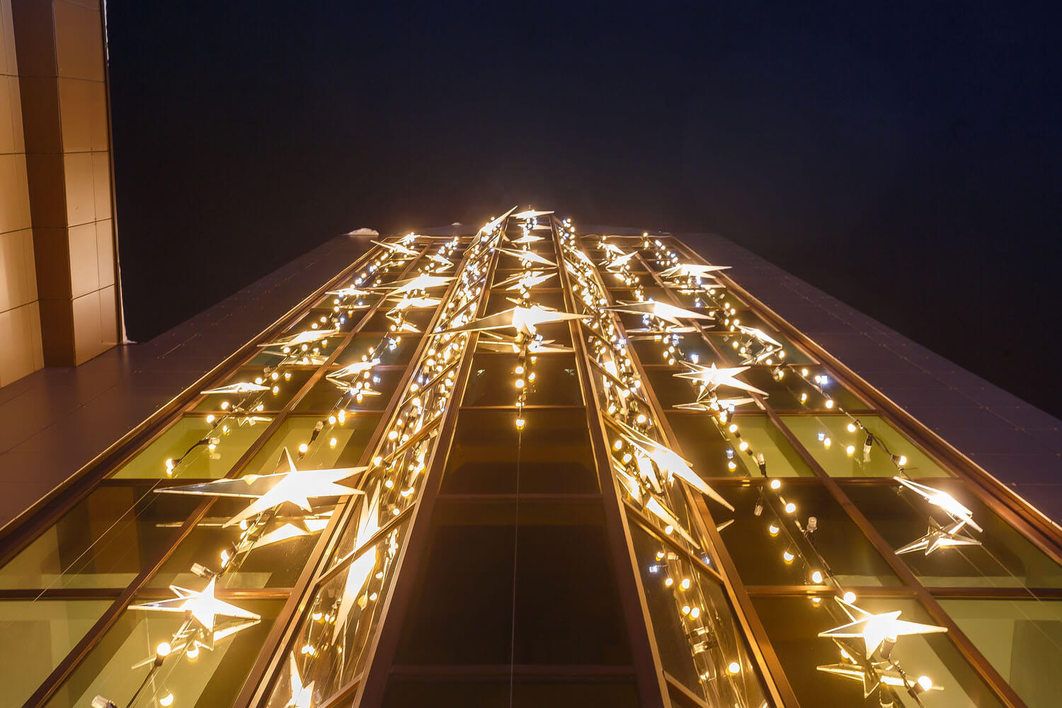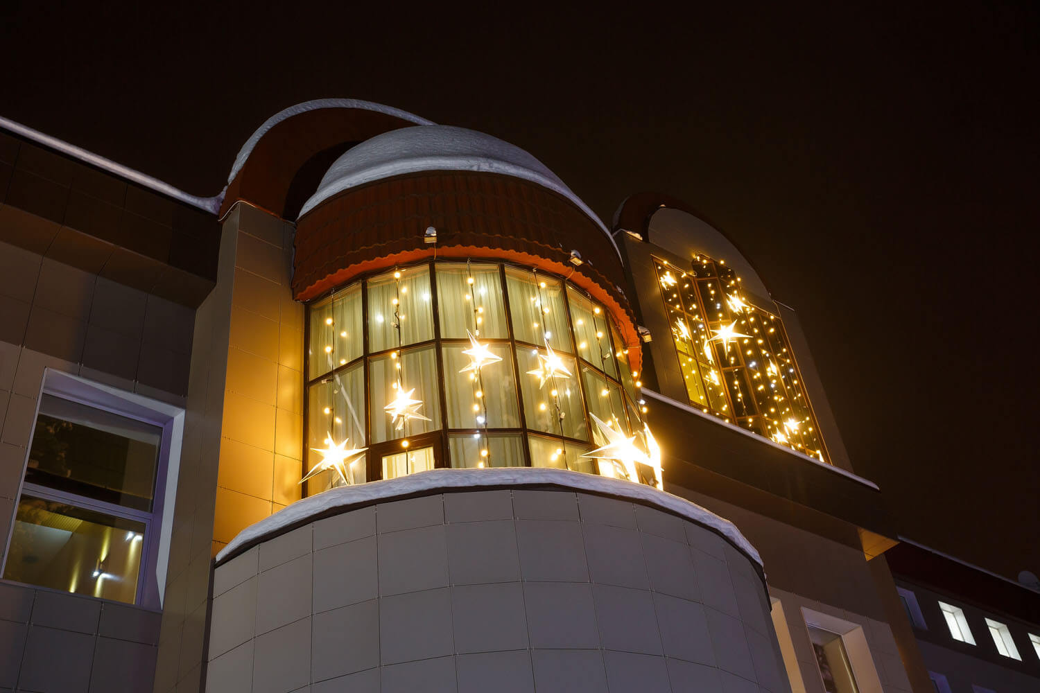 Для внешнего оформления здания важно продумать не только интересную концепцию, но постараться вписать украшения в облик города и сохранить исторический вид.