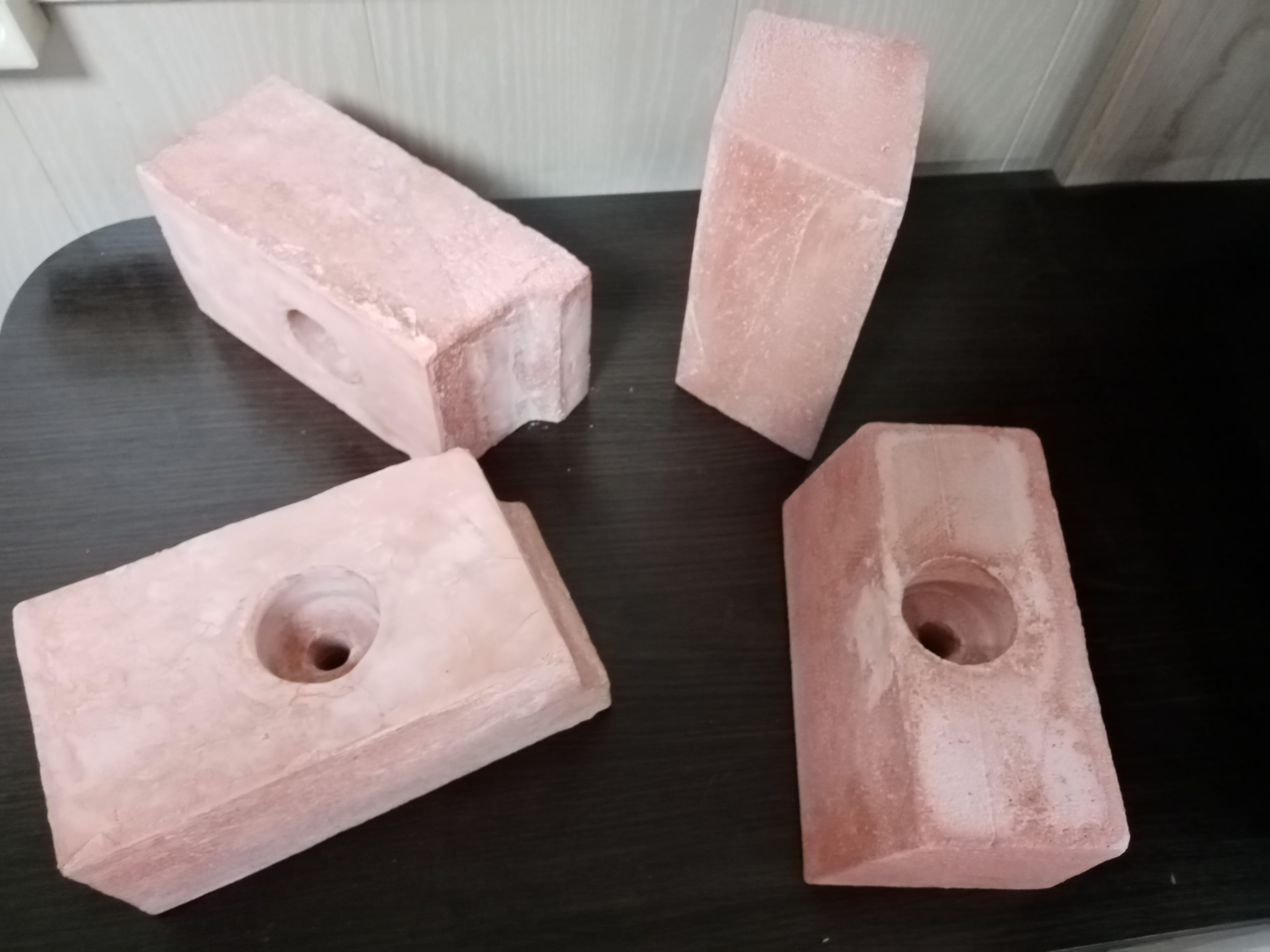 Изготовлен по индивидуальным чертежам, температуростойкость до 1800 С, назначение - текущий ремонт замена разрушенных фрагментов клинового кирпича по обмуровке смотрового окна промышленного высокотемпературного агрегата (плавильная печь).