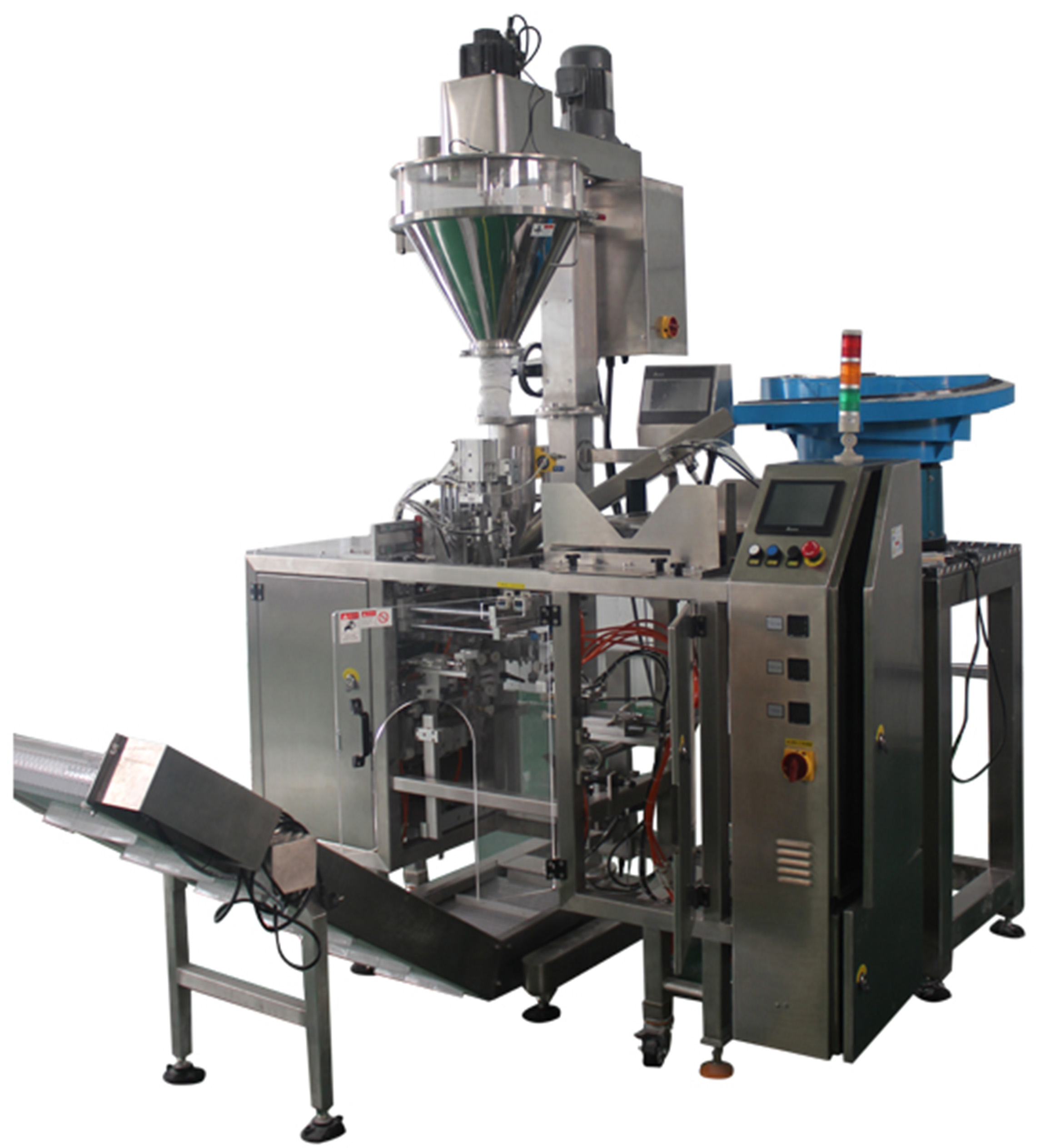 Автомат ДПМ20 может комполектоваться обёмными шнековыми дозаторами для фасовки сыпучих и порошкообразных продуктов в готовые дой-пак пакеты с zip застёжкой (или без неё).