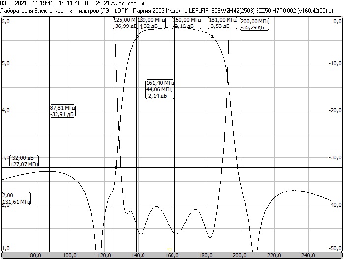 Фильтр-таблетка 10 мм с центральной частотой 160 МГц и полосой 42 МГц