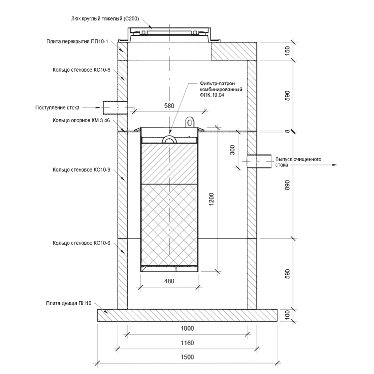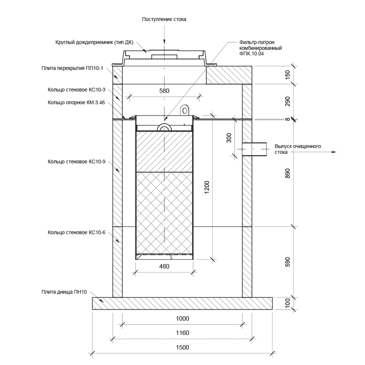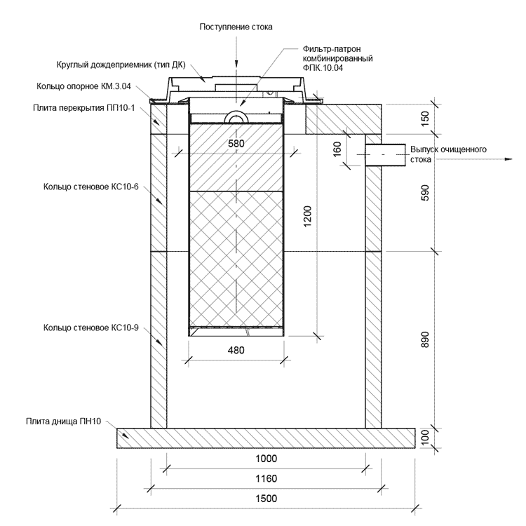 Наша компания предлагаем фильтр патроны на все практические случаи очистки поверхностных стоков, которые устанавливаются на опорные кольца или специальные ножки в дождеприемные колодцы.