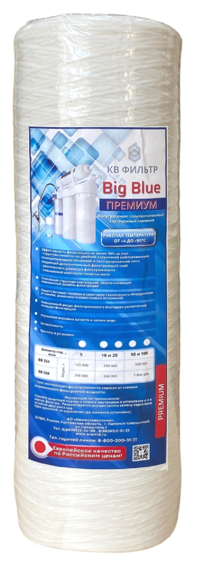 - Отличается широким диапозоном рабочих температур от +4 до +90° С, который позволяет использовать фильтрэлемент для очистки и холодной, и горячей воды.