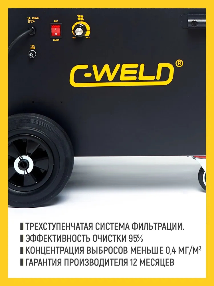 Установка предназначена для улавливания и очистки дыма и пыли при сварке, очистке сварных швов, пайке и шлифовании. При работе воздух всасывается в сопло, проходит через шланг диаметром 58 мм, затем через трёхступенчатую систему фильтрации, и чистый воздух выпускается через верхний выпускной патрубок.