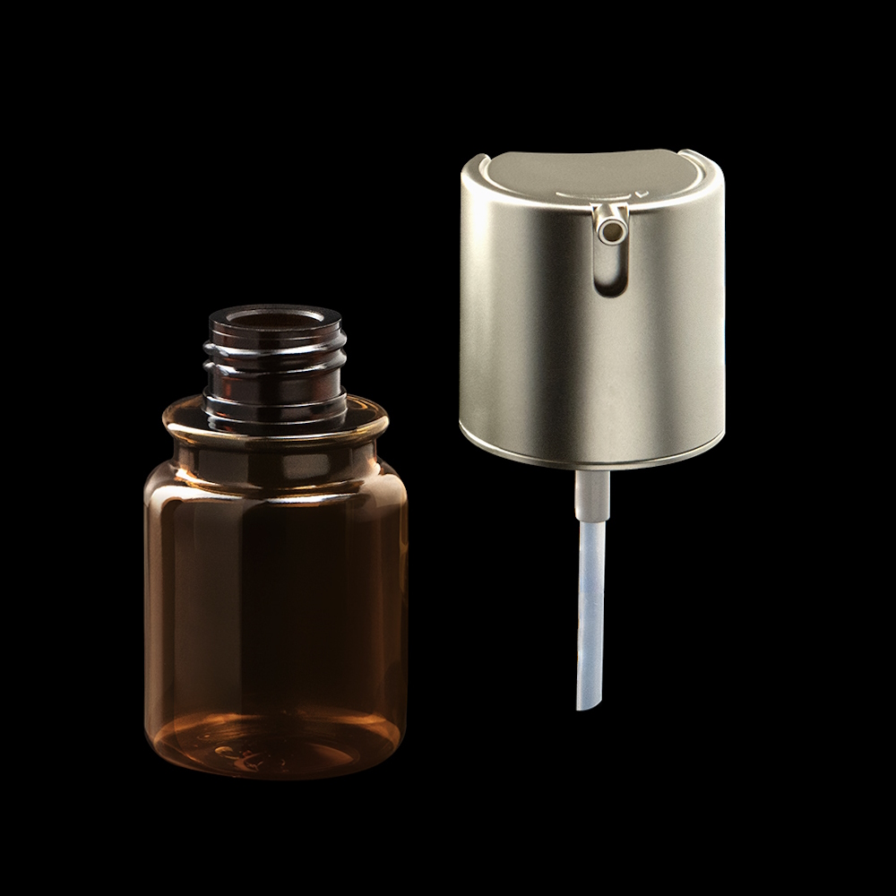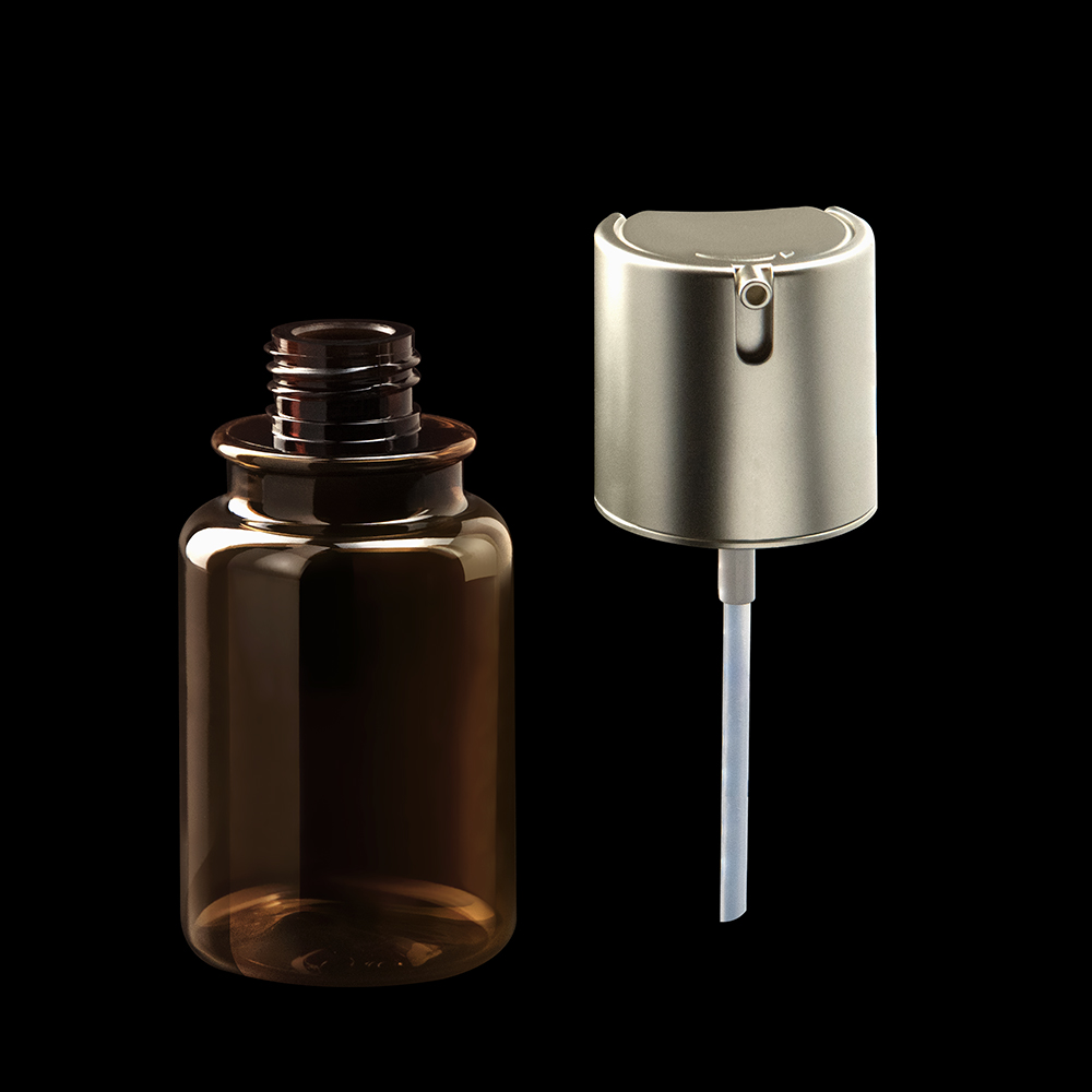 Флакон ПЭТГ Гланс из серии Гланс 40 мл, 60 мл, 100 мл, 130 мл комплектуется кремовым дозатором. Дозатор имеет поворотный механизм открытия и закрытия для защиты от случайных нажатий.