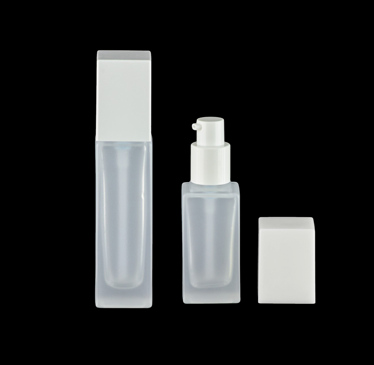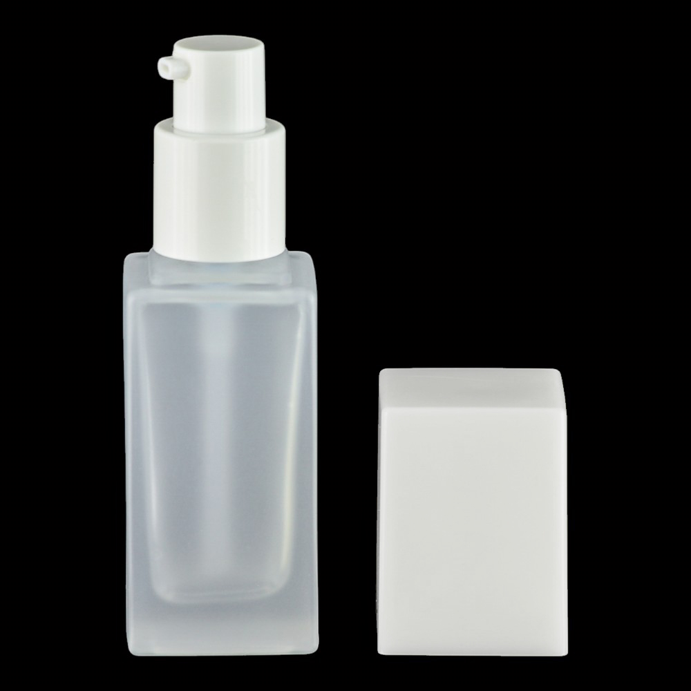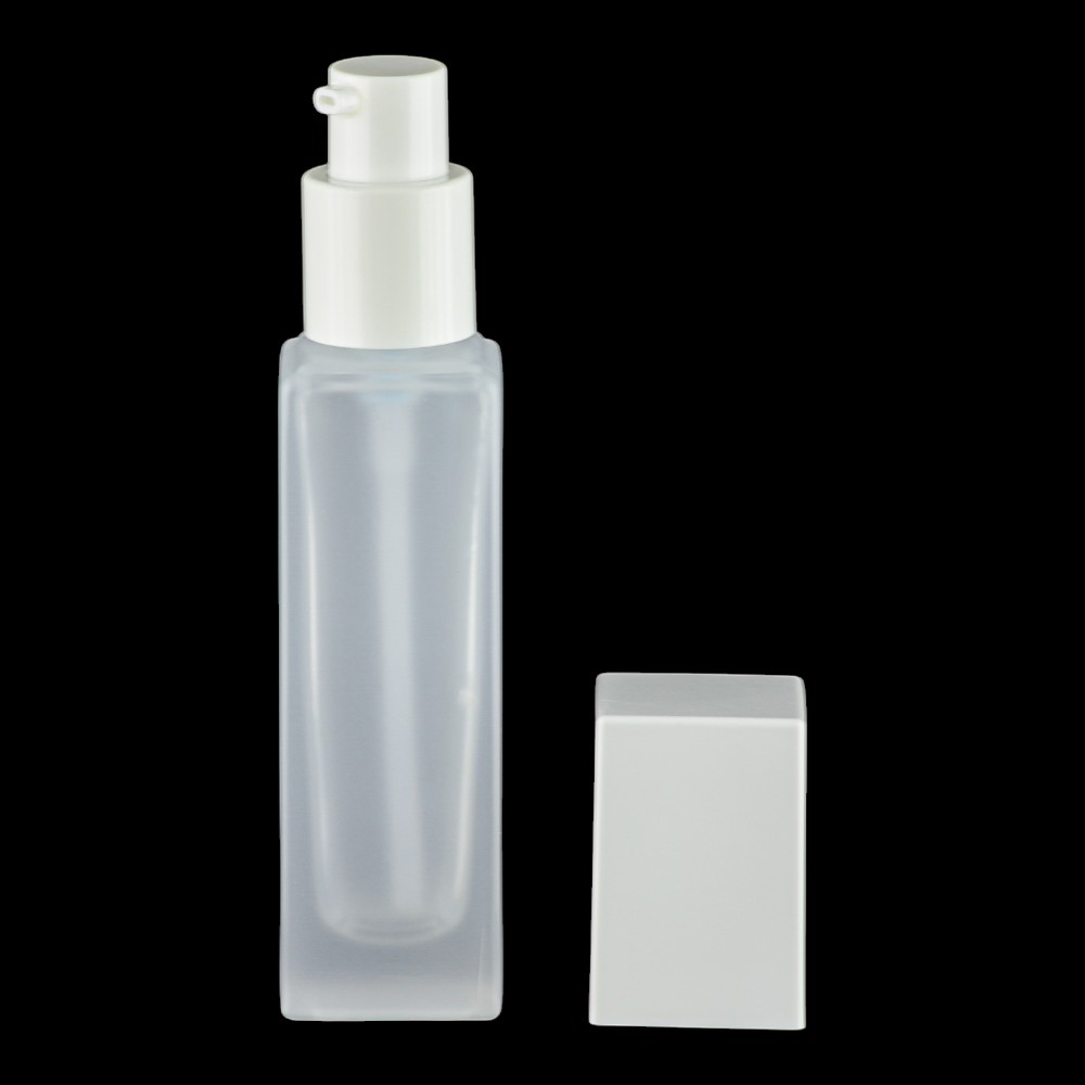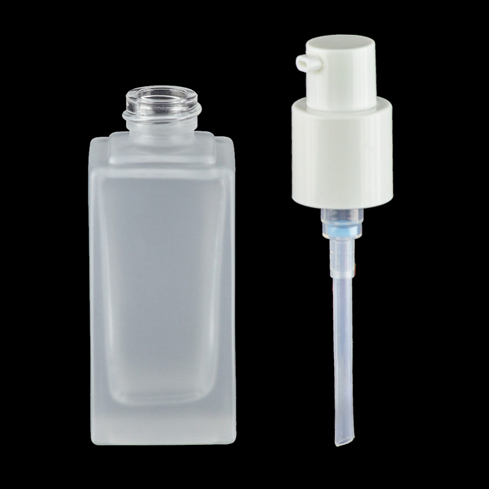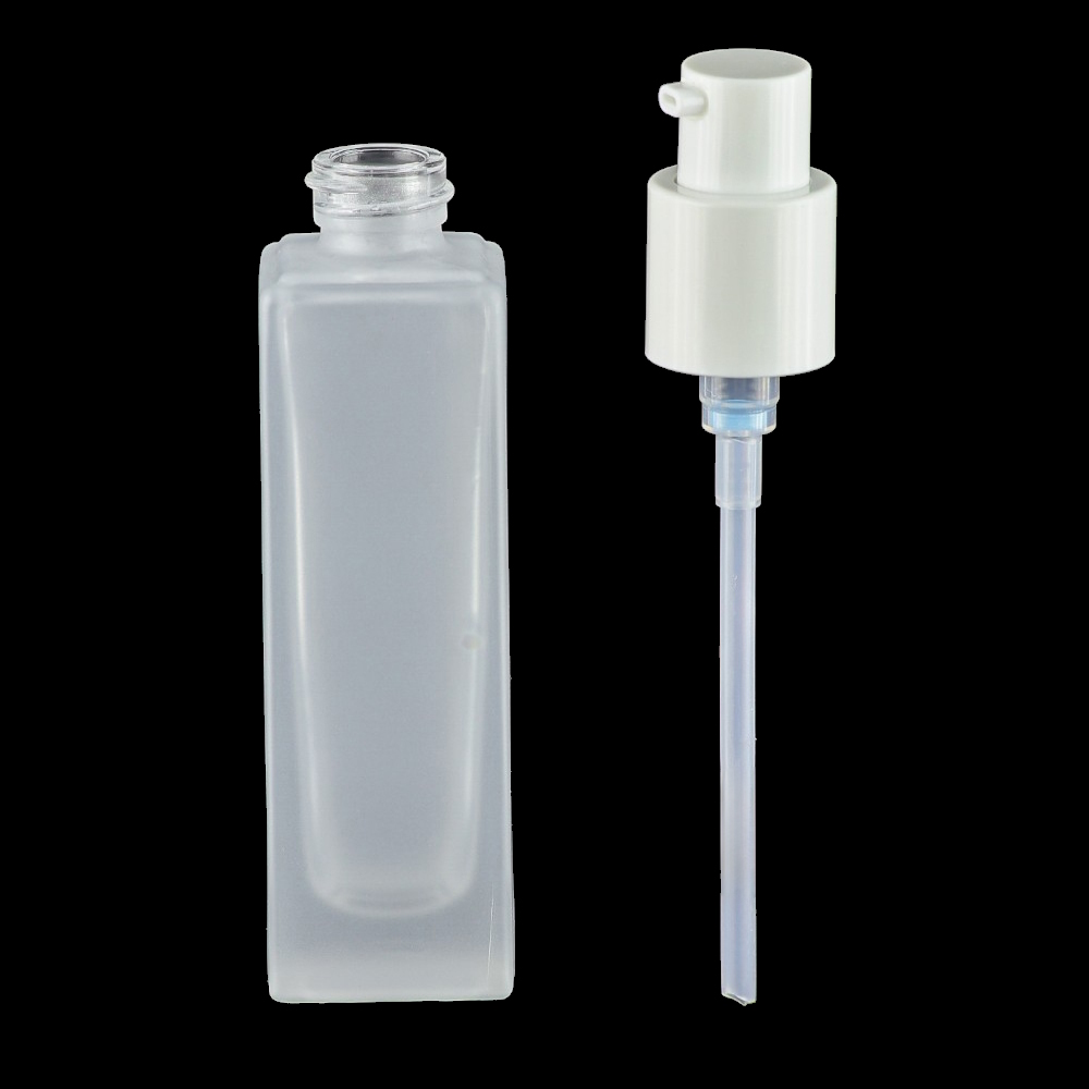 Флакон стеклянный Флокс из серии Флокс на 30 мл и 50 мл изготовлен со стандартом горла 18/410 и комплектуется дозатором для крема и защитным колпаком.