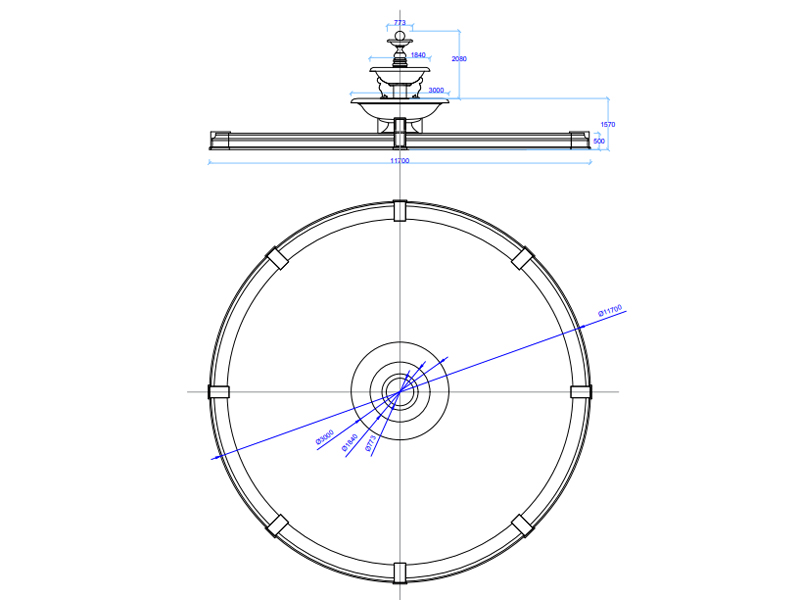 Фонтан FC «Ростов Великий» — классическая архитектурная модель крупного формата, предназначенная для применения в проектах благоустройства общественных пространств, парковых территорий и статусных частных объектов, где требуется масштабное водное сооружение с выраженной композиционной ролью. Модель высотой 3650 мм и диаметром 11700 мм выполнена в круглой форме из архитектурного прессованного бетона и рассчитана на наружную эксплуатацию; конструктивные характеристики материала, включая марку бетона М450, водонепроницаемость W12 и морозостойкость F370, позволяют использовать ее как долговечный элемент благоустройства с сохранением прочностных и декоративных свойств в течение длительного срока службы.