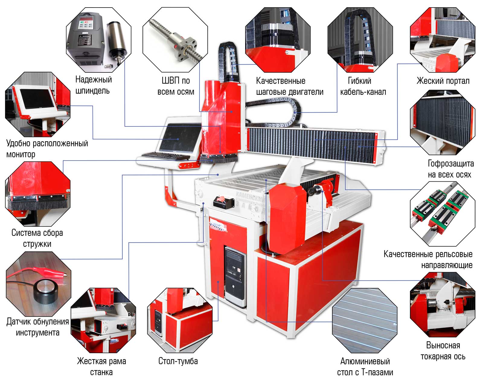 Завод занимается производством ЧПУ оборудования: фрезерные станки, станки для резки пенопласта, лазерные станки, станки для сверления профилей и т.д.