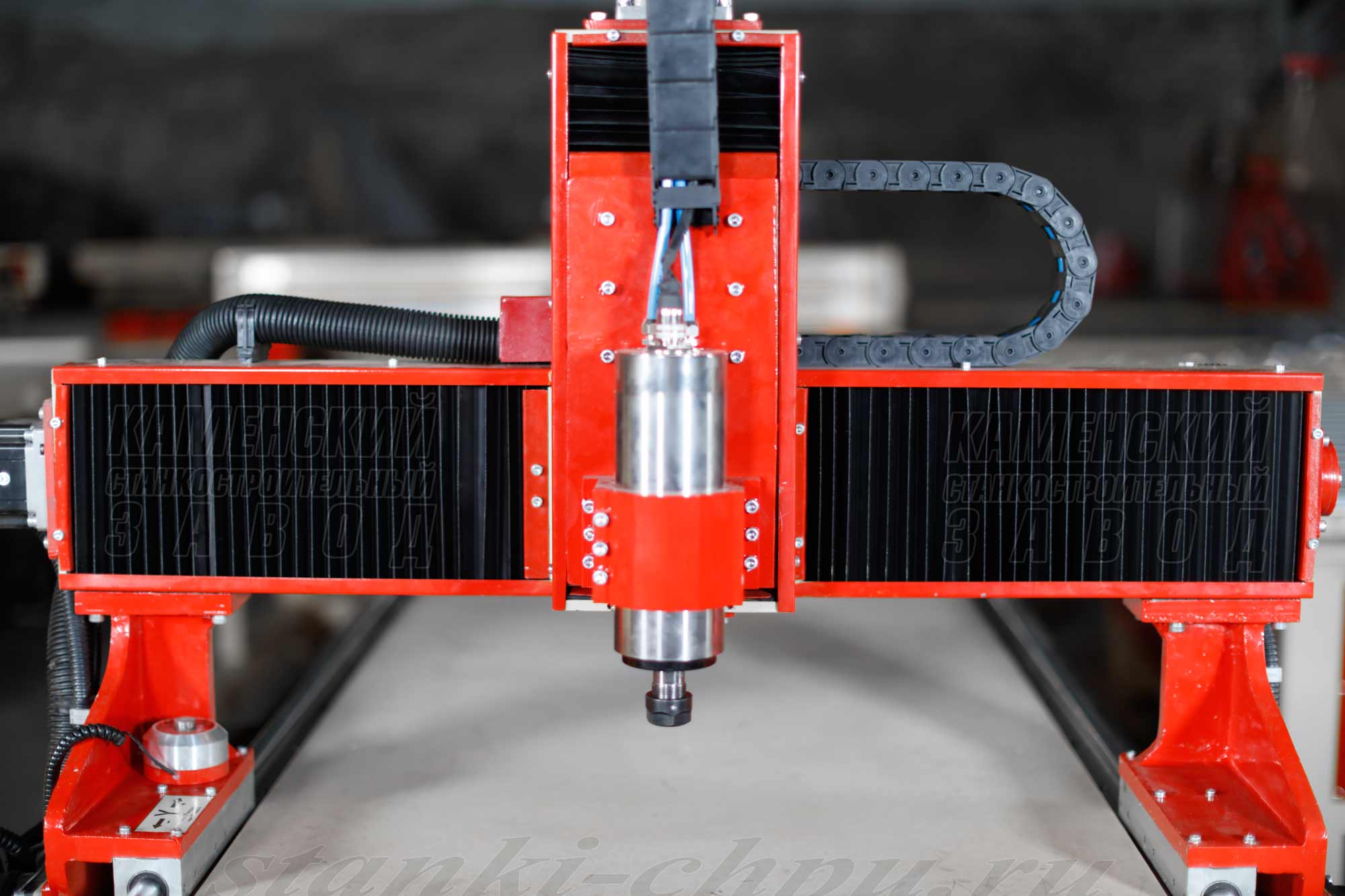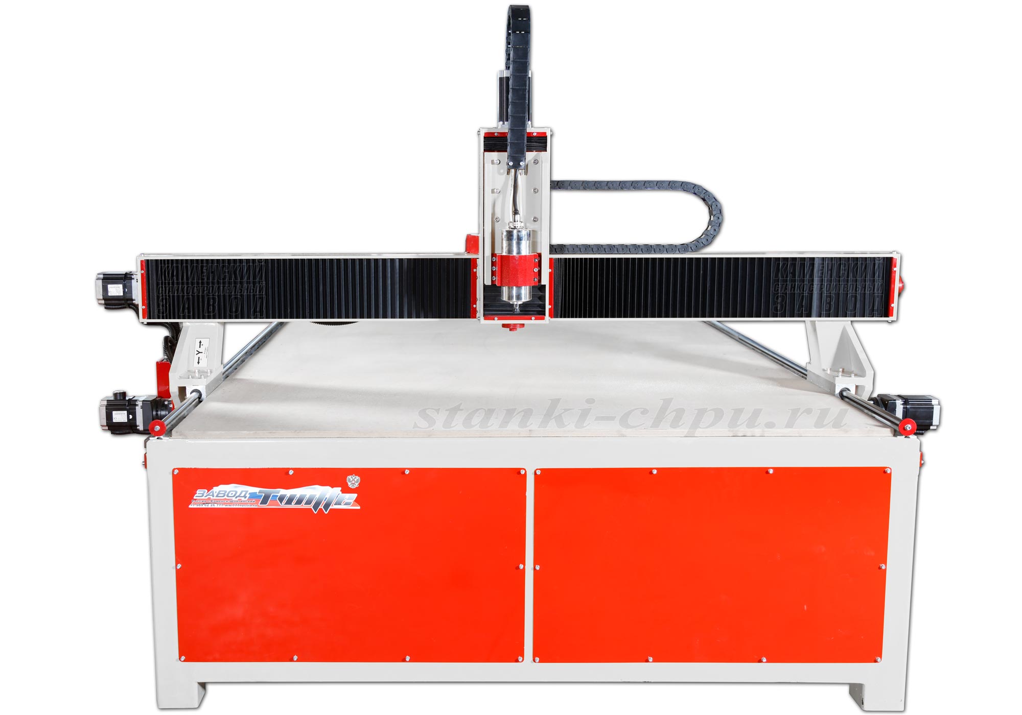 В качестве рабочего инструмента станка ЧПУ используется пальчиковая фреза, которая крепится в фрезерной головке. Мы устанавливаем головку в соответствии с требованиями заказчика. Головка прикрепляется кронштейном к вертикальной каретке, движимой шаговыми двигателями с помощью винтовой передачей. На поперечной каретке крепится вертикальная каретка. На балке станка ЧПУ работает направляющая и жестко закрепленная зубчатая рейка. Станок ЧПУ работает, приводимый в движение шаговыми двигателями с редуктором.