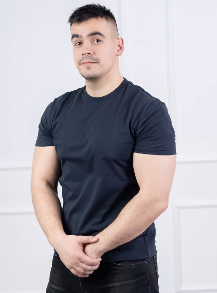 Базовая мужская футболка. Спортивная однотонная футболка изготовлена из мягкого, дышащего, плотного и приятного к телу трикотажного полотна - кулирка, в составе которой 100 % хлопок. Плотность - 145 г/м2. Стильная футболка имеет свободный прямой крой, круглый вырез, воротник и короткие рукава. Футболка с большим выбором трендовых цветов. Т-shirt идеально подойдёт для нанесения принта.