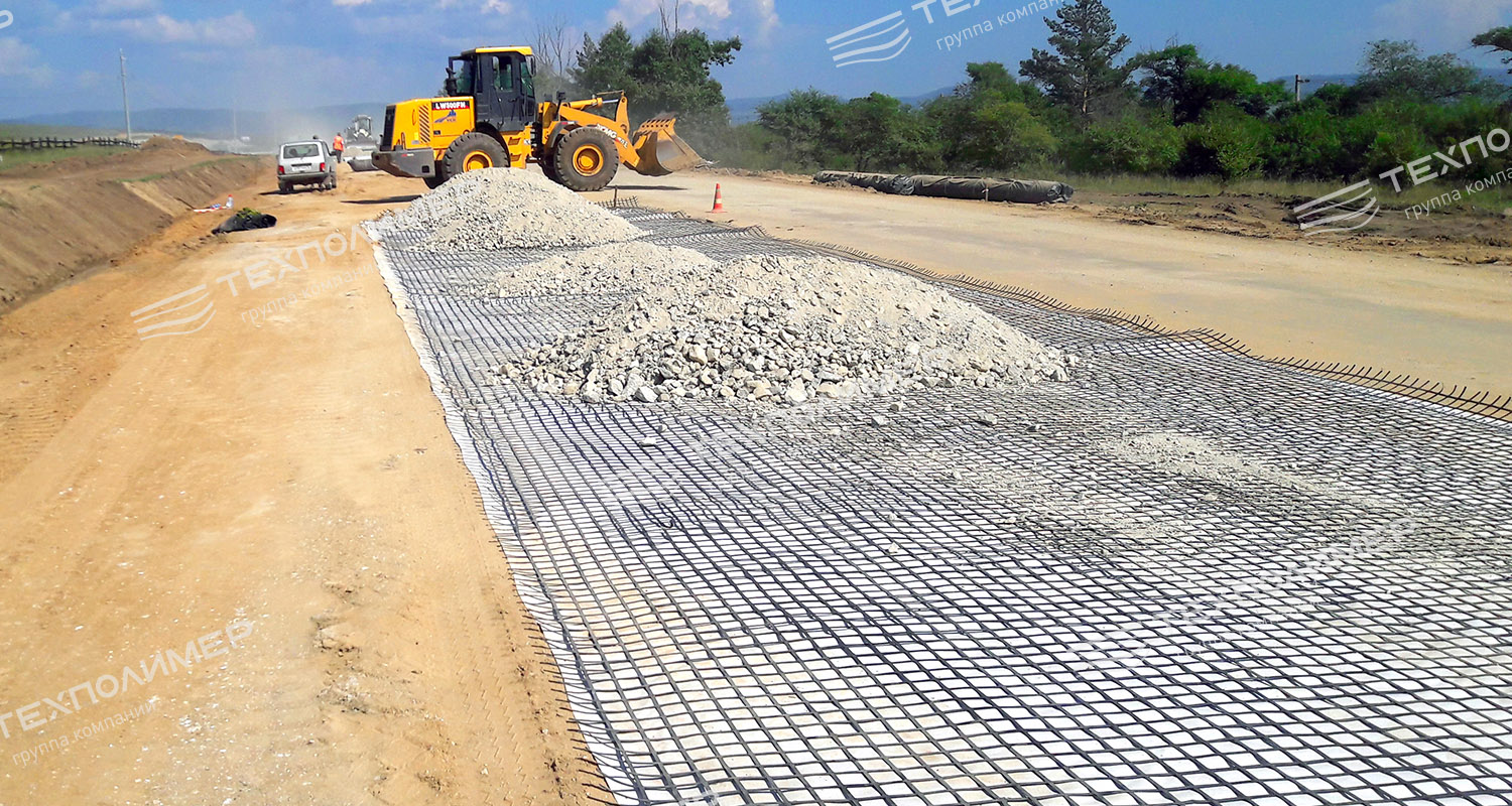 Армирующая георешетка равномерно перераспределяет нагрузку на дорожное полотно, тем самым предотвращая повреждения, исключает неравномерные просадки и взаимное перемешивание дисперсных слоев. Материал снижает затраты на традиционные материалы за счет уменьшения толщины конструктивных слоев.