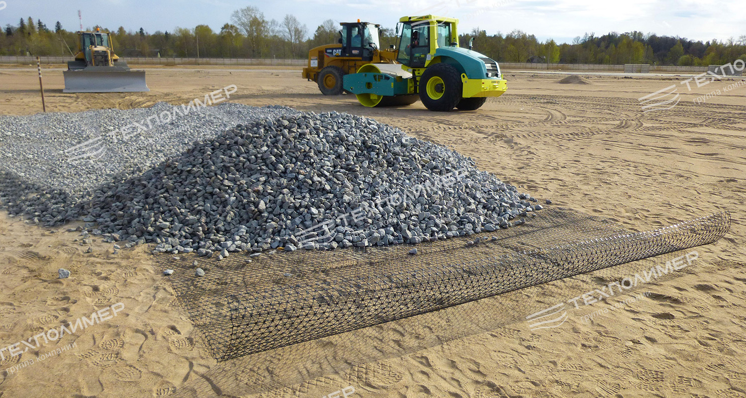 Основная задача заключается в равномерном распределении динамической нагрузки, что замедляет или предотвращает повреждение дорожного полотна. Еще одно полезное свойство материала — препятствие взаимопроникновению дискретных слоев дорожной одежды и обеспечение надежной заклинки щебня.