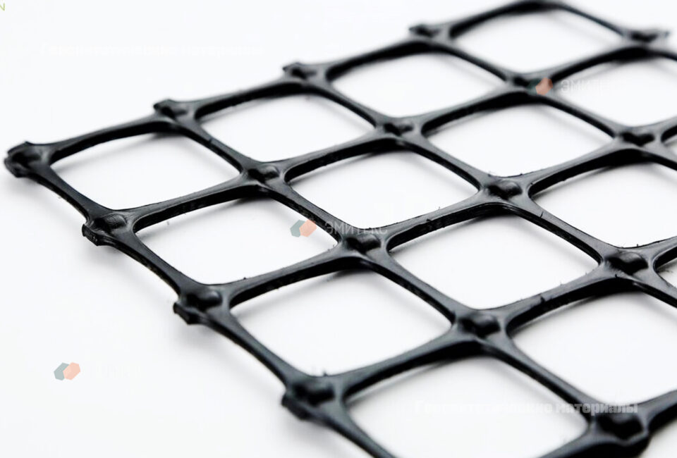 Геосетка – многофункциональная георешётка из стабилизированного полипропилена. Ориентированна в продольном и поперечном направлениях (двуосная). Прочность узлов равна прочности ребер — до 50 кН/м. Увеличивает несущую способность конструкции и обеспечивает длительную стабильность слоёв основания. Применение изделий такого типа способствует двукратному уменьшению слоя засыпки песка либо щебня при проектных работах на объекте строительства.