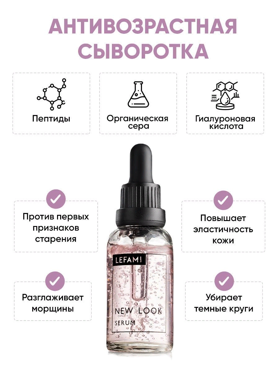 Увлажняющая восстанавливающая пептидная сыворотка вокруг глаз с гиалуроновой кислотой — это профессиональная уходовая женская косметика для кожи лица. Российские сыворотки для кожи глаз и лица разработаны в лаборатории Lefami для деликатного ухода за кожей вокруг глаз в домашних условиях. Антивозрастная гиалуроновая сыворотка для лица избавит вашу кожу от первых признаков старения. Корректирующая питательная сыворотка для лица состоит из: гиалуроновая кислота, органическая сера, палмитил трипептид 1 и палмитил трипептид 7. Активные вещества лифтинг сыворотки для кожи вокруг глаз быстро проникают в глубокие слои кожи, разглаживая и насыщая ее. Сыворотка против темных кругов под глазами при регулярном использовании помогает бороться от мимических морщин и гусиных лапок вокруг глаз. Омолаживающая гель лифтинг сыворотка для лица должна быть в косметичке каждого, кто хочет давать достойный отпор старости.