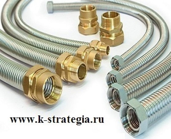 ООО Комцентр Стратегия производит гибкую сильфонную подводку из коррозионностойкой стали аустенитного класса. По конструкции нержавеющие гибкие подводки напоминают гофрированный шланг или металлорукав, выполненный из гибкой гофрированный трубы (кольцевая гофра), где латунные накидные гайки завальцованы на краях по рукаву (детали, непосредственно соприкасающиеся с водой, выполнены из нержавеющей стали).