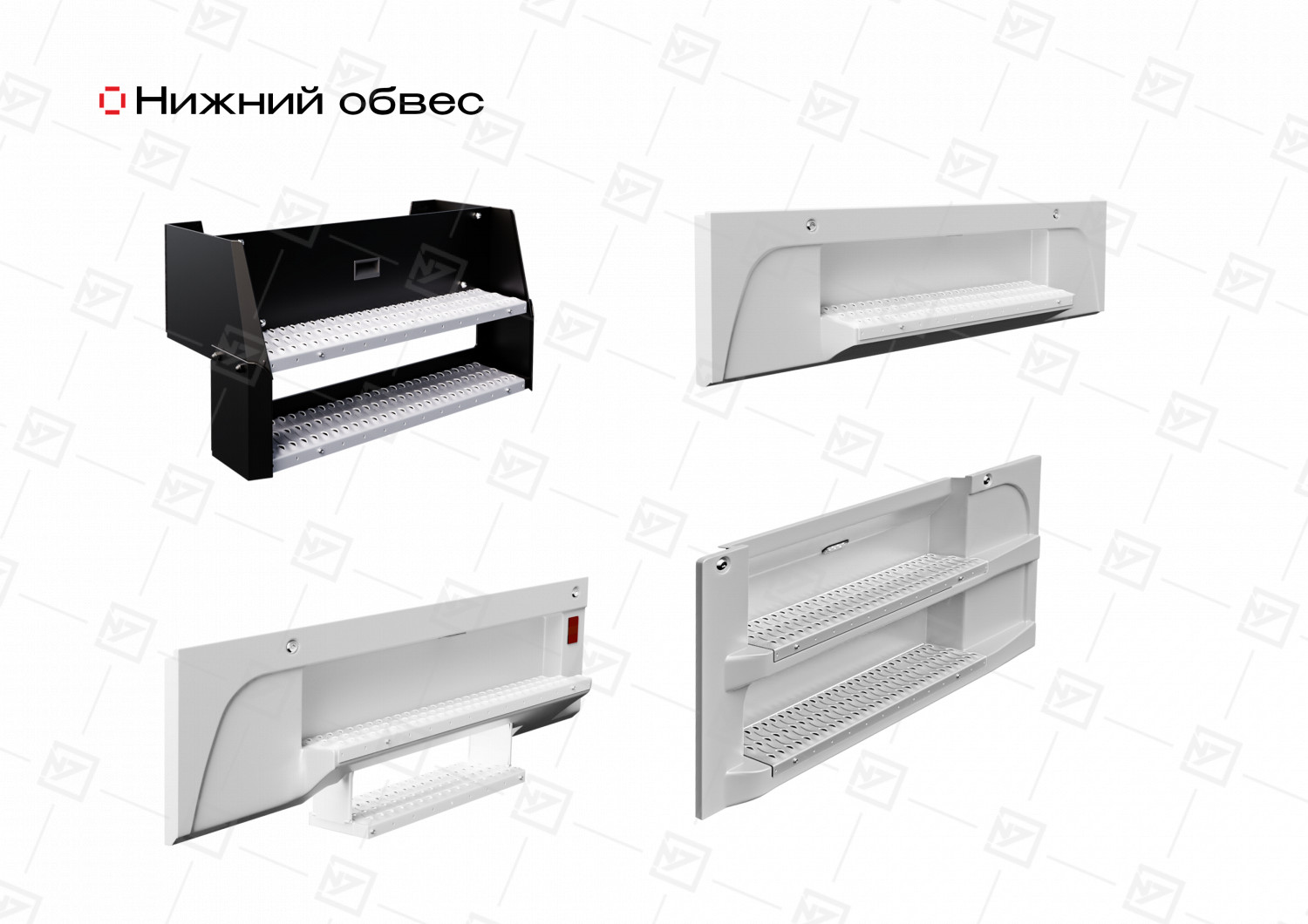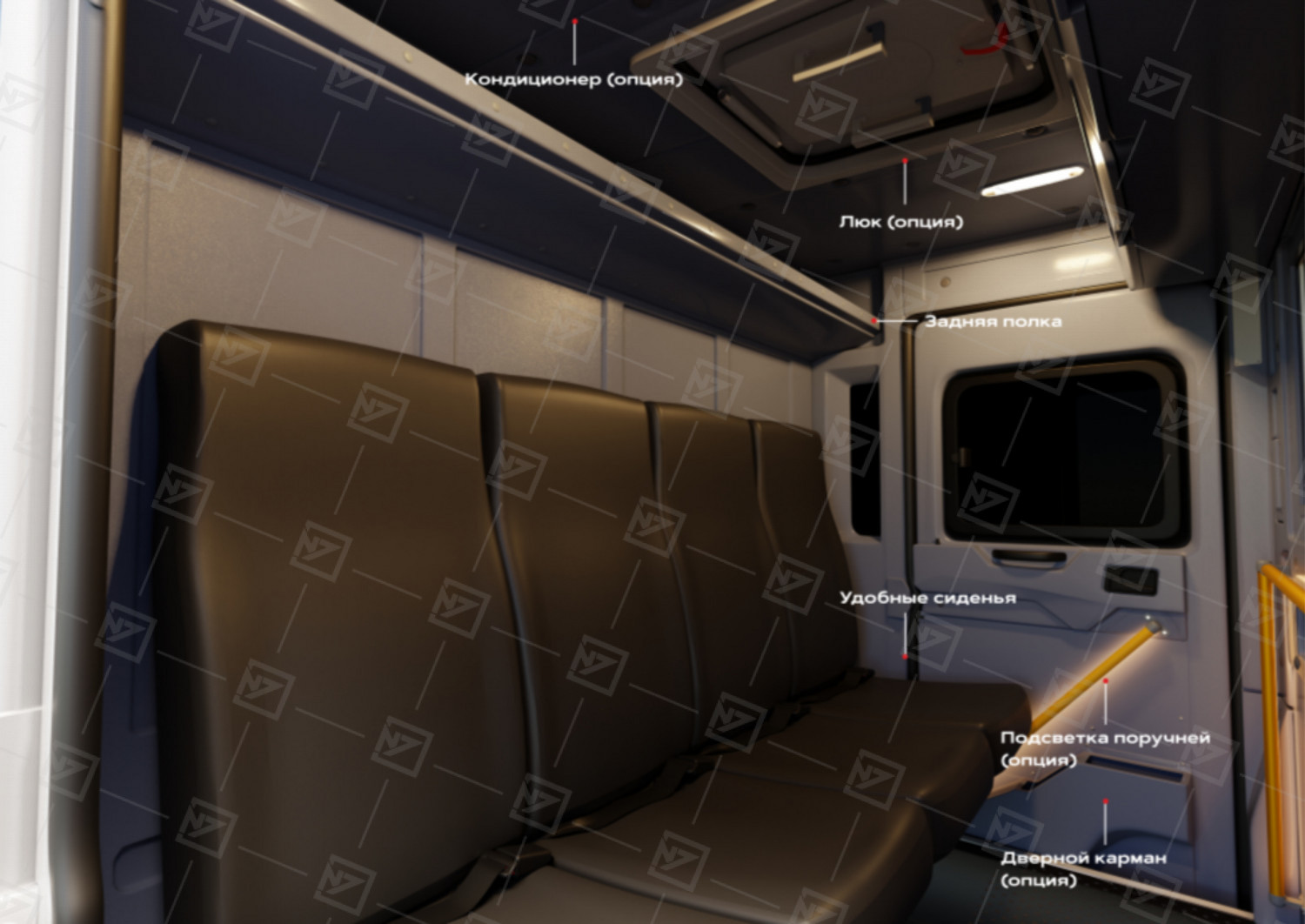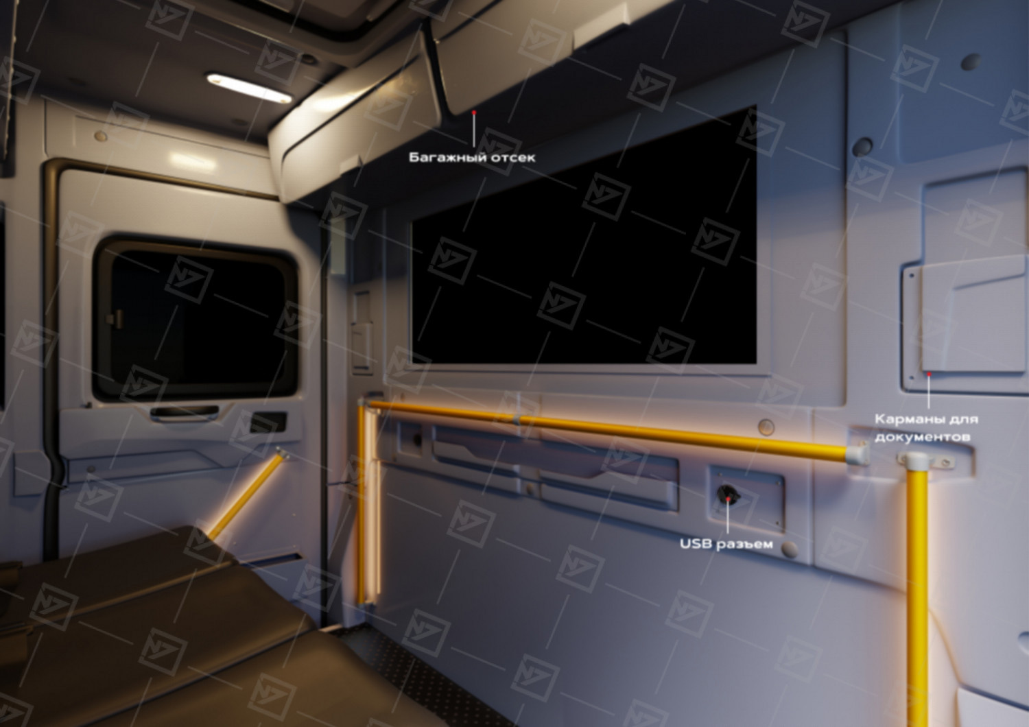 Грузопассажирский автомобиль на шасси Урал Next 4320-6952-74 с модульной кабиной для 4-х человек. Кабина из стеклопластика устойчива к повреждениям, легкая и эргономичная. Сзади — открытая грузовая платформа с откидными бортами и крано-манипуляторная установка с выдвижными аутригерами. Размеры (ДхШхВ): 4333х2550х750 мм. Пол — фанера.
