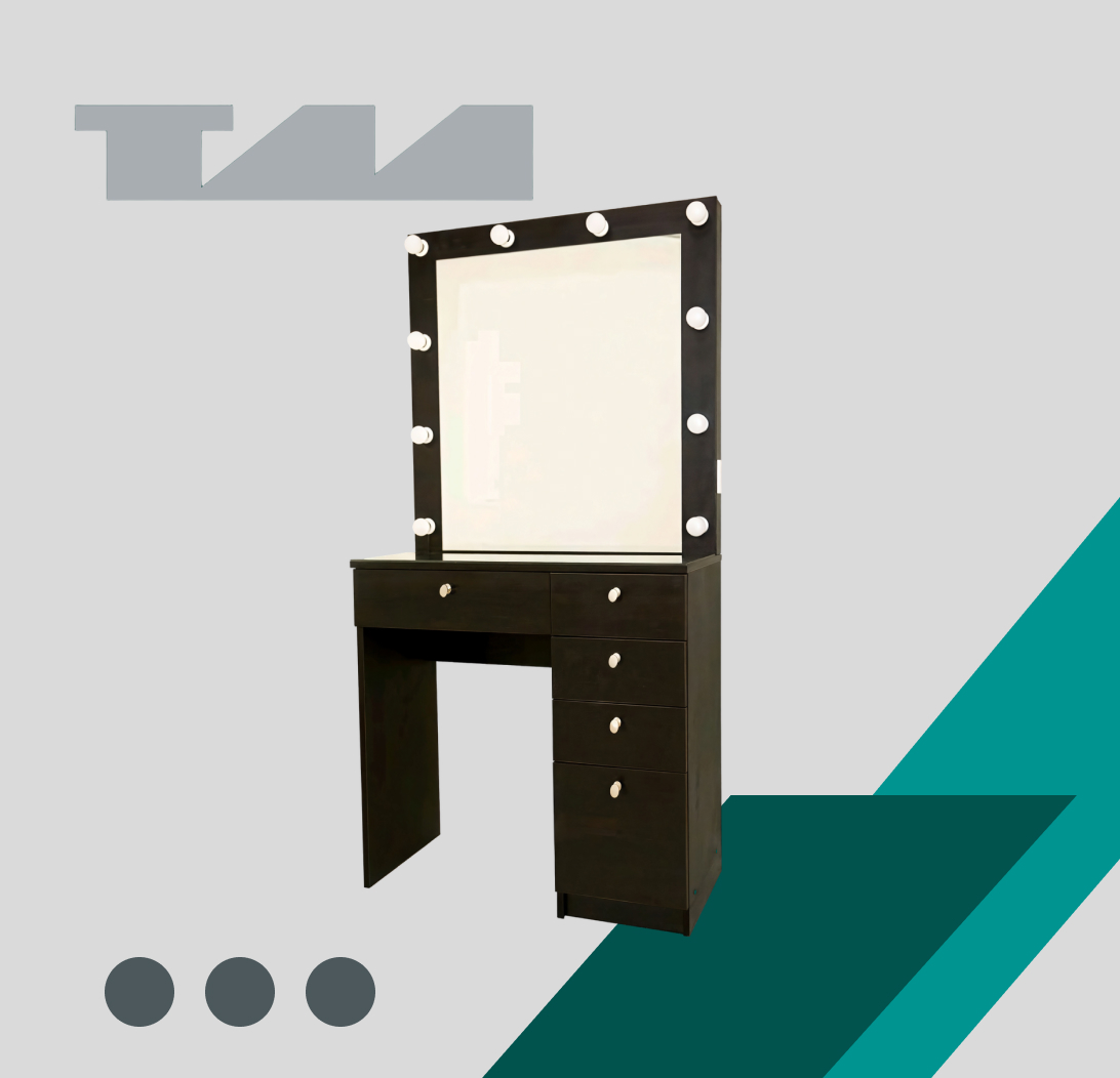 Функциональные гримерные столы с качественными зеркалами для оснащения театров, телестудий, гримерных салонов и учебных заведений. Наши модели сочетают профессиональные характеристики с эргономичным дизайном, обеспечивая комфортные условия для работы визажистов и артистов.