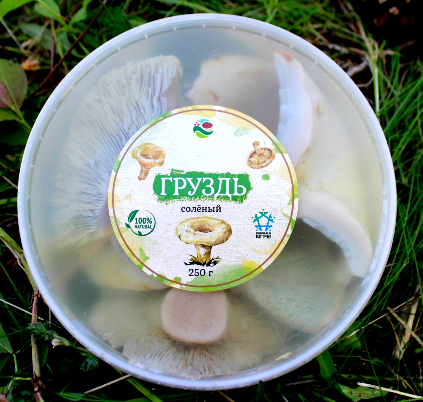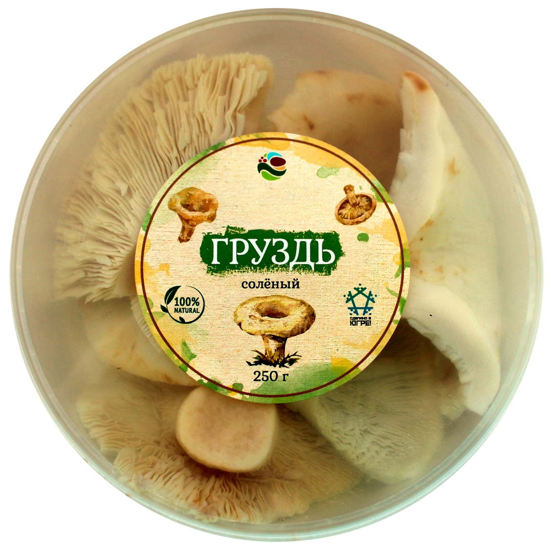 Грузди соленые от компании "Дары Югры". Место сбора дикоросов Ханты-Мансийский автономный округ - Югра. Состав: груздь настоящий, вода, соль, специи.